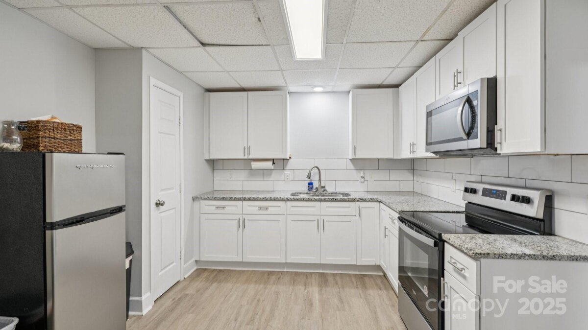 Welcome to this beautifully maintained ranch-style home in Ardmore Manor, offering 5 bedrooms and 3 full bathrooms—perfect for multi-generational living. Ideally located just 1 mile from Forsyth Medical Center and Hanes Mall, and only 3 miles from downtown Winston-Salem, this home provides easy access to major highways while maintaining a peaceful residential setting on a generous 1.65-acre lot. The home interior has been freshly painted and features vinyl flooring throughout the main living areas, crown molding for an added touch of elegance, and a bright, modern kitchen with stainless steel appliances and a stylish tile backsplash. The formal dining room provides a great space for meals and entertaining guests. The primary suite offers a peaceful retreat with a dual vanity in the master bath and plenty of closet space. There are three flex areas to suit your lifestyle: a home office or formal dining room upstairs, a sunroom upstairs, and an office or playroom space in the basement—in addition to a large living room in the basement for relaxation or gatherings. Enjoy the outdoors from multiple spaces, including a welcoming front stoop, two rear decks, a rear patio, and a side patio—all perfect for relaxing or entertaining. The backyard features a fenced-in, in-ground pool for summer fun, a garden area for your green thumb, and a fenced-in side yard. A detached storage building provides plenty of room for tools and equipment. Combining comfort, functionality, and versatile living spaces both inside and out, this charming ranch in a prime location is ready to welcome you home!