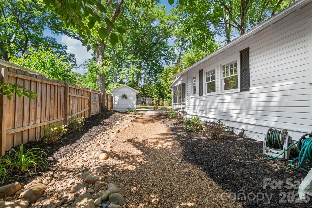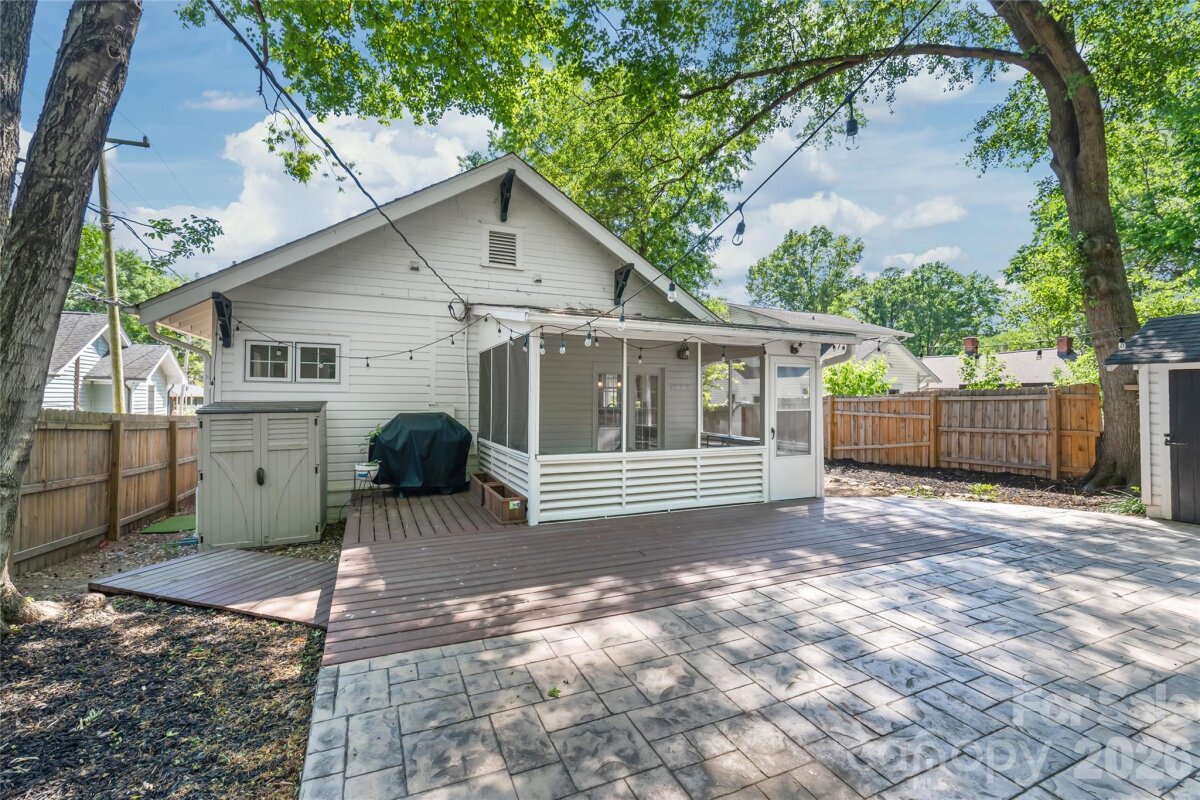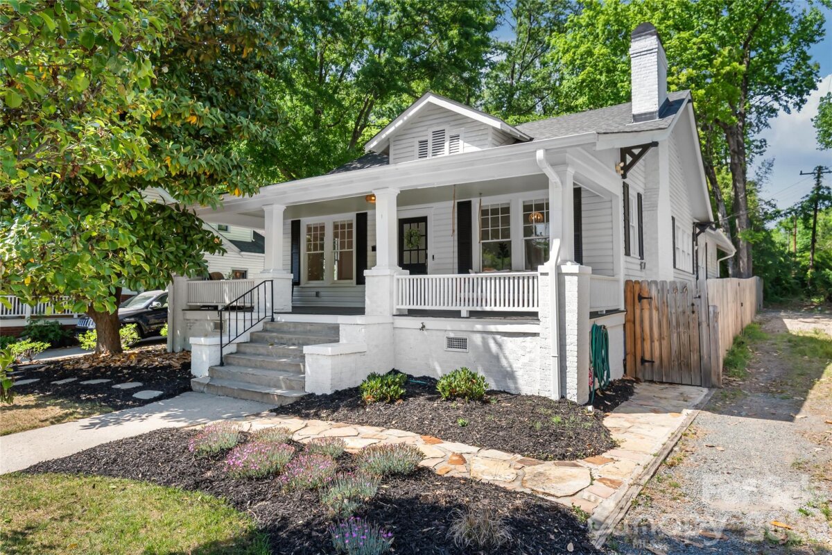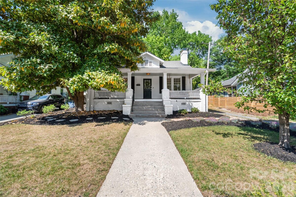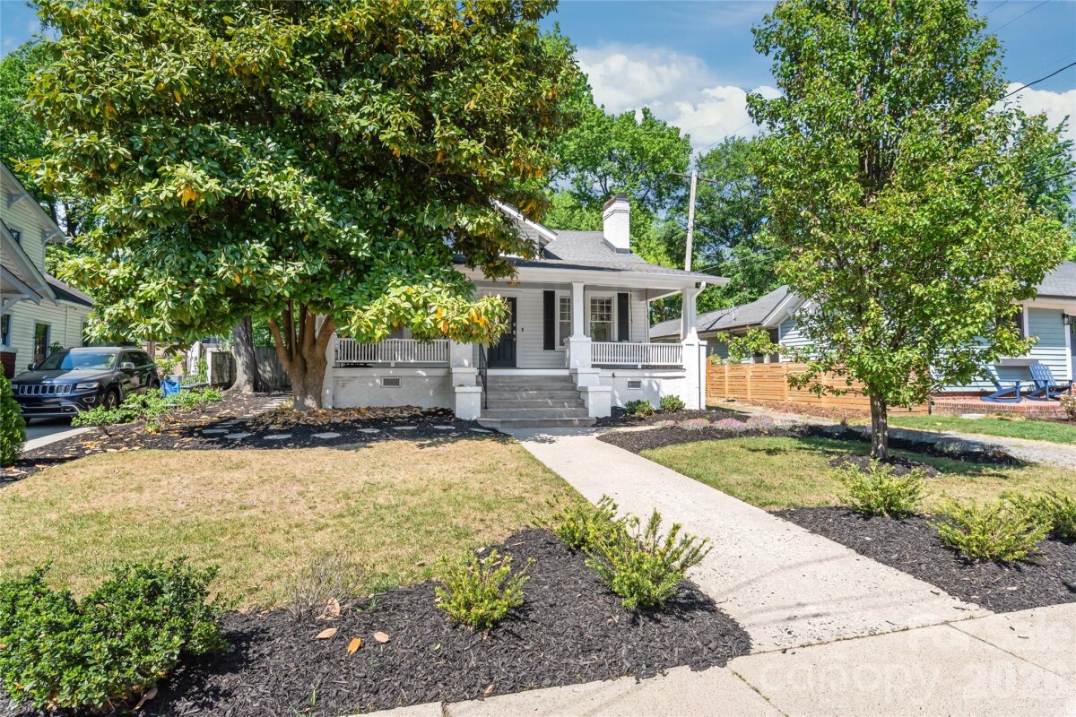 Experience the epitome of historic bungalow living in this charming Plaza Midwood home! Built in 1932, this home is nestled on sought-after Belvedere Avenue - just a half block off The Plaza! Enjoy all that Midwood has to offer, and plant your flag just a stone's throw away from Midwood Park, Mezzo Market, Culture Shop, Giddy Goat, Workman's Friend, and Michelin-rated Supperland. This bungalow boats charming built-ins, original oak floors, tongue and groove front porch, and soaring 9' ceilings. Home features oversized living and dining rooms, and spacious bedrooms - spread all across one level :) Intentional indoor & outdoor gathering spaces are perfect for unwinding and enjoying evenings with your close circle. Enjoy your views and perch from the large front porch, featuring a daybed porch swing and separate area for lounging or dining. Or, retreat to the private backyard complete with a hardscaped patio area, putting green, and screened-in rear porch. Original storage shed and newer storage cabinet provide additional storage for belongings or tools. Inside, the home features an updated kitchen with granite countertops, timeless shaker cabinetry, sink beneath large double windows, and a cozy breakfast bar. Dining room features fireplace with original tile and mantle, custom built-ins, and dry bar -- giving the space a warm and classy feel that's perfect for dinner parties. The primary bedroom is spacious and easily accommodates a king-sized bed; primary suite features an updated walk-in closet (a rarity!), and large shower and double vanity. Come experience the best that Midwood has to offer!