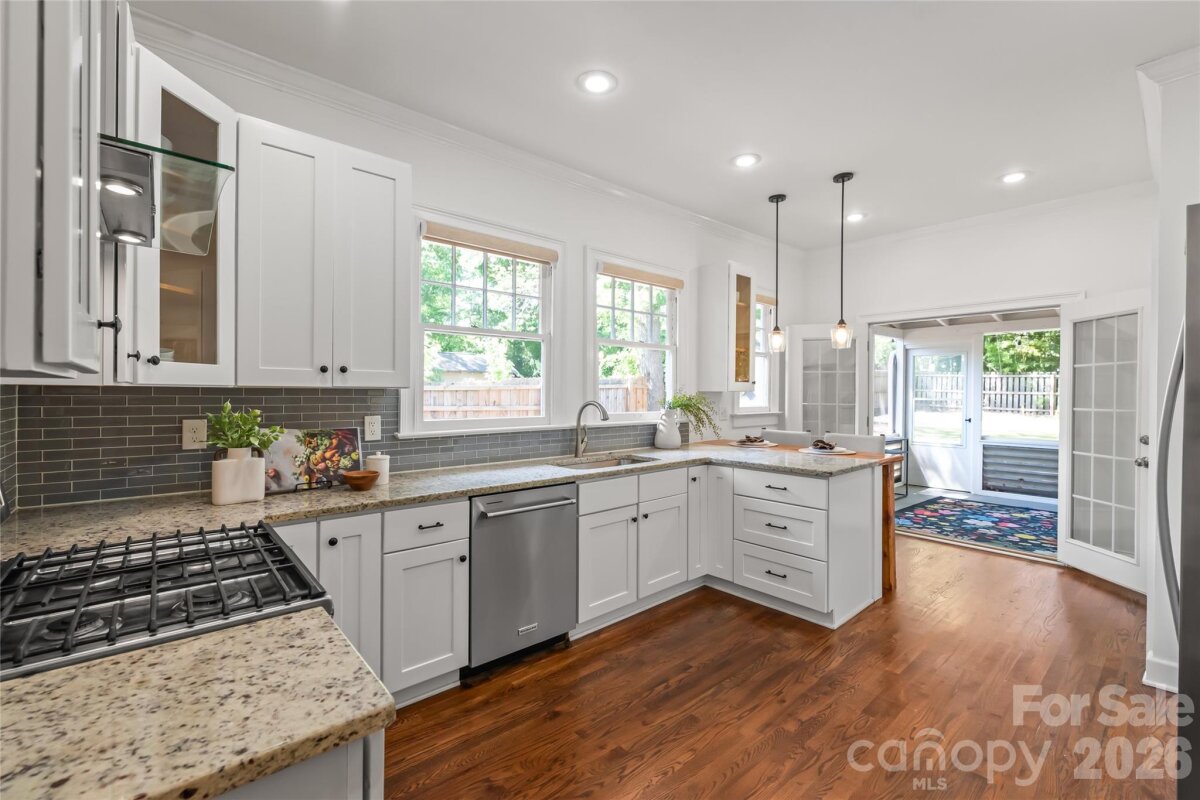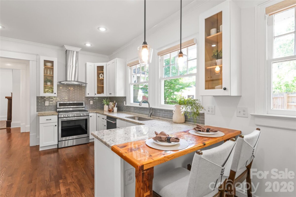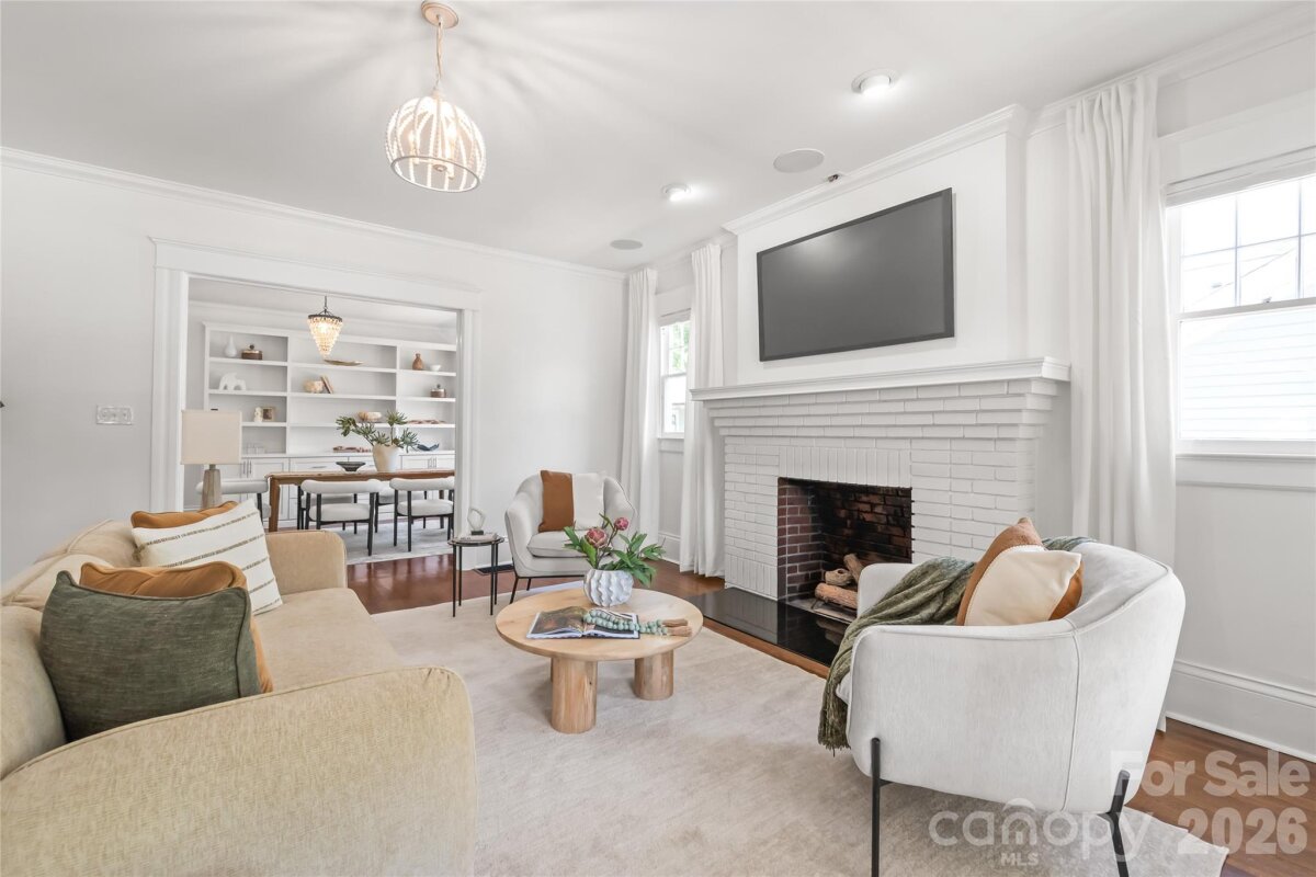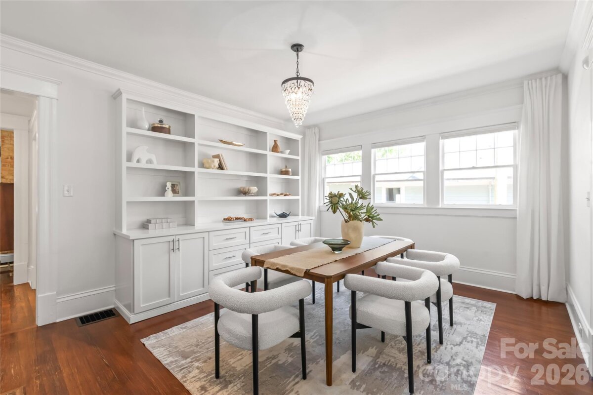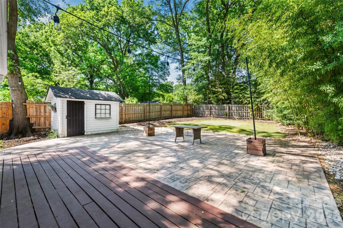 Experience the epitome of historic bungalow living in this charming Plaza Midwood home! Built in 1932, this home is nestled on sought-after Belvedere Avenue - just a half block off The Plaza! Enjoy all that Midwood has to offer, and plant your flag just a stone's throw away from Midwood Park, Mezzo Market, Culture Shop, Giddy Goat, Workman's Friend, and Michelin-rated Supperland. This bungalow boats charming built-ins, original oak floors, tongue and groove front porch, and soaring 9' ceilings. Home features oversized living and dining rooms, and spacious bedrooms - spread all across one level :) Intentional indoor & outdoor gathering spaces are perfect for unwinding and enjoying evenings with your close circle. Enjoy your views and perch from the large front porch, featuring a daybed porch swing and separate area for lounging or dining. Or, retreat to the private backyard complete with a hardscaped patio area, putting green, and screened-in rear porch. Original storage shed and newer storage cabinet provide additional storage for belongings or tools. Inside, the home features an updated kitchen with granite countertops, timeless shaker cabinetry, sink beneath large double windows, and a cozy breakfast bar. Dining room features fireplace with original tile and mantle, custom built-ins, and dry bar -- giving the space a warm and classy feel that's perfect for dinner parties. The primary bedroom is spacious and easily accommodates a king-sized bed; primary suite features an updated walk-in closet (a rarity!), and large shower and double vanity. Come experience the best that Midwood has to offer!