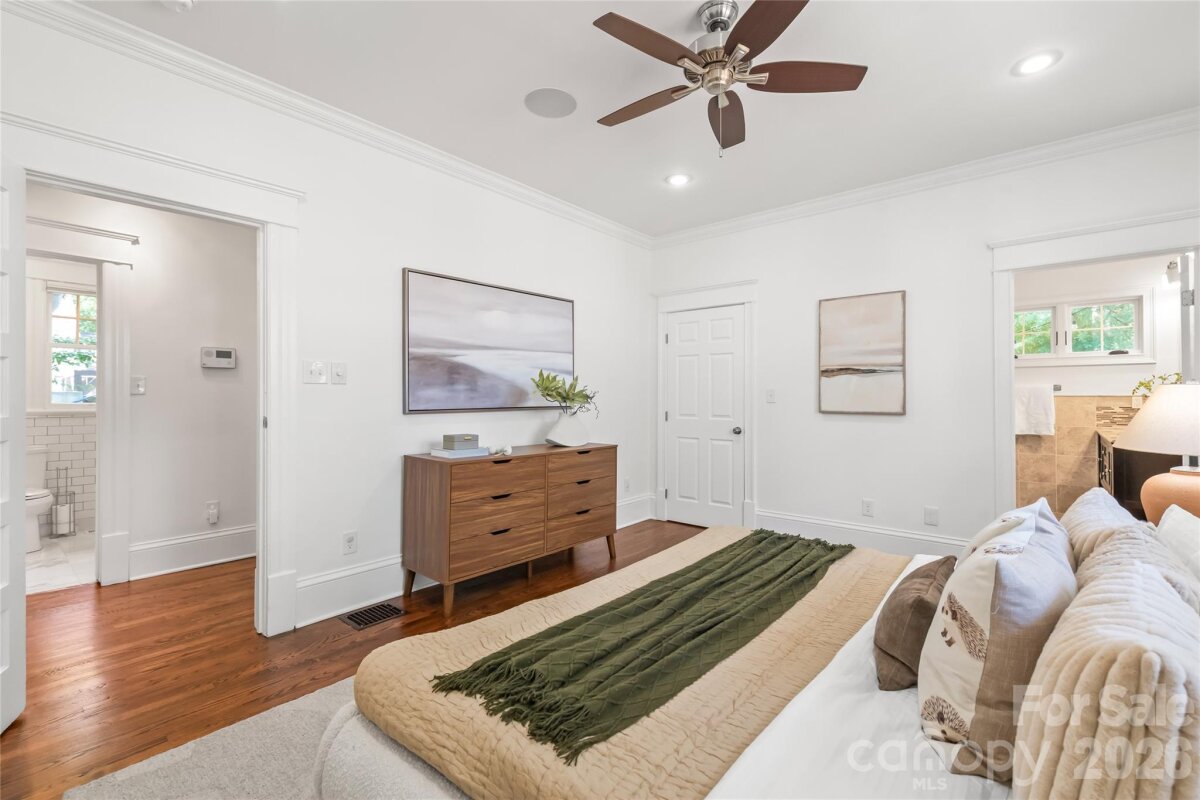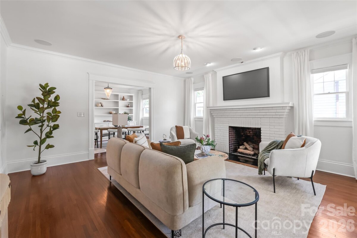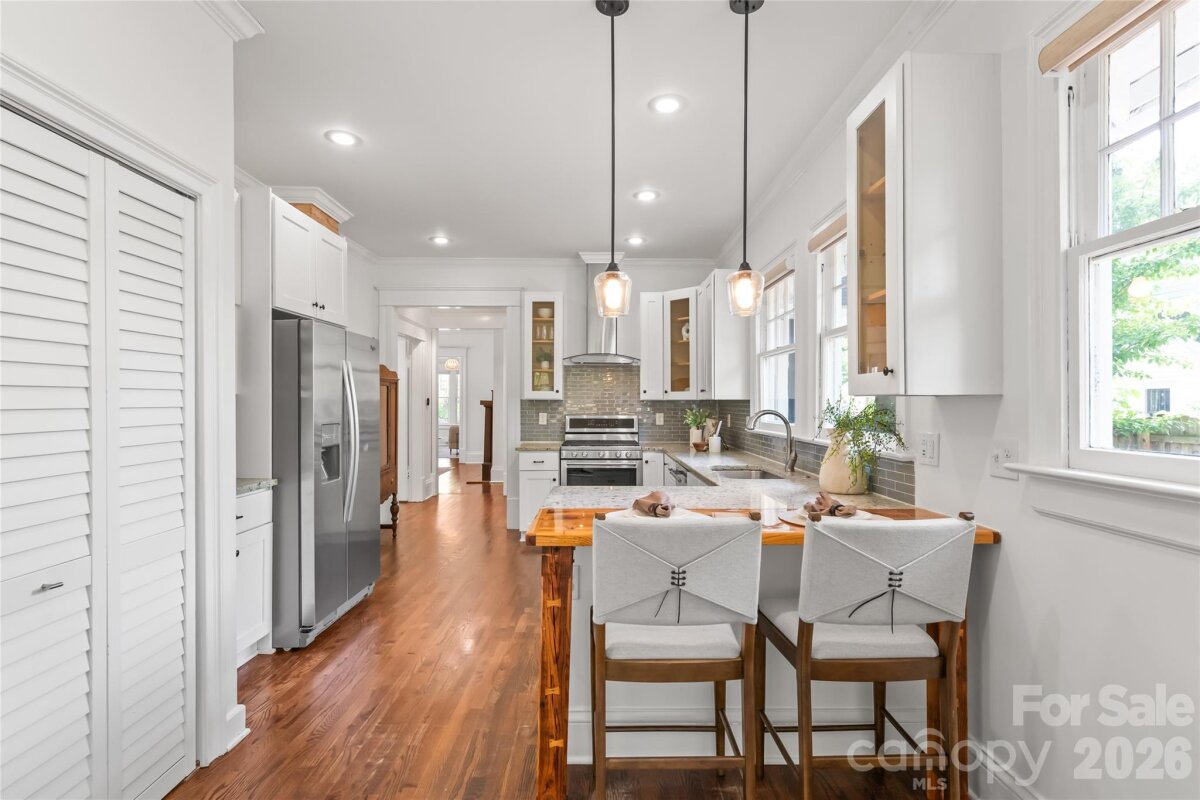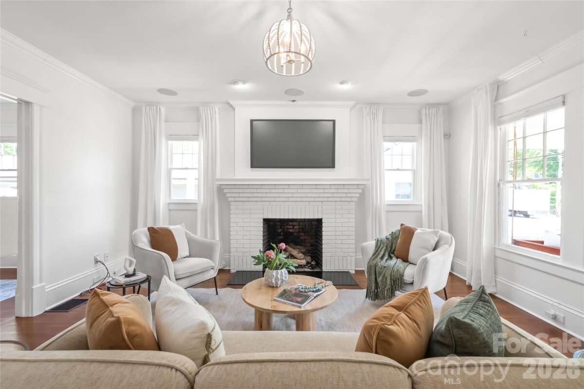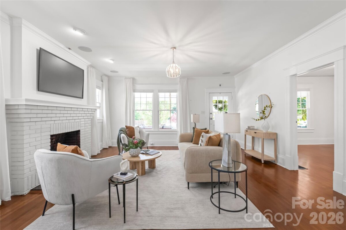 Experience the epitome of historic bungalow living in this charming Plaza Midwood home! Built in 1932, this home is nestled on sought-after Belvedere Avenue - just a half block off The Plaza! Enjoy all that Midwood has to offer, and plant your flag just a stone's throw away from Midwood Park, Mezzo Market, Culture Shop, Giddy Goat, Workman's Friend, and Michelin-rated Supperland. This bungalow boats charming built-ins, original oak floors, tongue and groove front porch, and soaring 9' ceilings. Home features oversized living and dining rooms, and spacious bedrooms - spread all across one level :) Intentional indoor & outdoor gathering spaces are perfect for unwinding and enjoying evenings with your close circle. Enjoy your views and perch from the large front porch, featuring a daybed porch swing and separate area for lounging or dining. Or, retreat to the private backyard complete with a hardscaped patio area, putting green, and screened-in rear porch. Original storage shed and newer storage cabinet provide additional storage for belongings or tools. Inside, the home features an updated kitchen with granite countertops, timeless shaker cabinetry, sink beneath large double windows, and a cozy breakfast bar. Dining room features fireplace with original tile and mantle, custom built-ins, and dry bar -- giving the space a warm and classy feel that's perfect for dinner parties. The primary bedroom is spacious and easily accommodates a king-sized bed; primary suite features an updated walk-in closet (a rarity!), and large shower and double vanity. Come experience the best that Midwood has to offer!