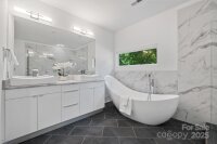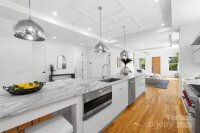 Experience refined modern living in this custom-designed and built 5-bedroom, 4-bathroom home located in one of Charlotte’s most sought-after neighborhoods—Plaza Midwood. Nestled on a quiet street yet just steps from popular restaurants, shops, and nightlife, and with a short commute to Uptown, this stunning residence combines location, style, and functionality. From the moment you enter, a dramatic 2-story foyer and eye-catching staircase set the tone for this light-filled, design-forward home. Enjoy soaring 9-10 ft ceilings throughout and an open-concept layout that seamlessly blends spacious living, dining, and kitchen areas—ideal for entertaining or everyday living. The chef’s kitchen is a true showstopper, featuring a ~20-foot marble waterfall island, sleek European cabinetry, Sub-Zero refrigerator, Wolf gas range, Wolf drawer-style microwave, and a Thermador dishwasher. High-end finishes abound, including real solid hardwood floors throughout (excluding bathrooms and laundry, which feature designer tile), 8-foot solid-core doors on the main level, and custom built-in shelving in every closet and storage space. The main level includes a bedroom and full bath—perfect for guests or multigenerational living. Upstairs, the luxurious primary suite offers a private balcony, in-wall color-changing fireplace, and a spa-inspired bath with heated tile floors, a freestanding soaking tub, and an oversized double shower with built-in Bluetooth™ sound system. Additional highlights include two-zone HVAC with smart controls, opulent lighting throughout, and in-wall horizontal fireplaces in both the great room and primary suite for a bold modern touch. If you’re seeking a light-infused, custom modern home in the heart of Plaza Midwood with unmatched finishes and thoughtful design, this is the one. NOTE: Part of the wow factor for this amazing home is the furniture, which has all been designed by Restoration Hardware and Modani. The seller is willing to negotiate the sale of the furniture in a separate transaction. Seller will also consider leasing the home.