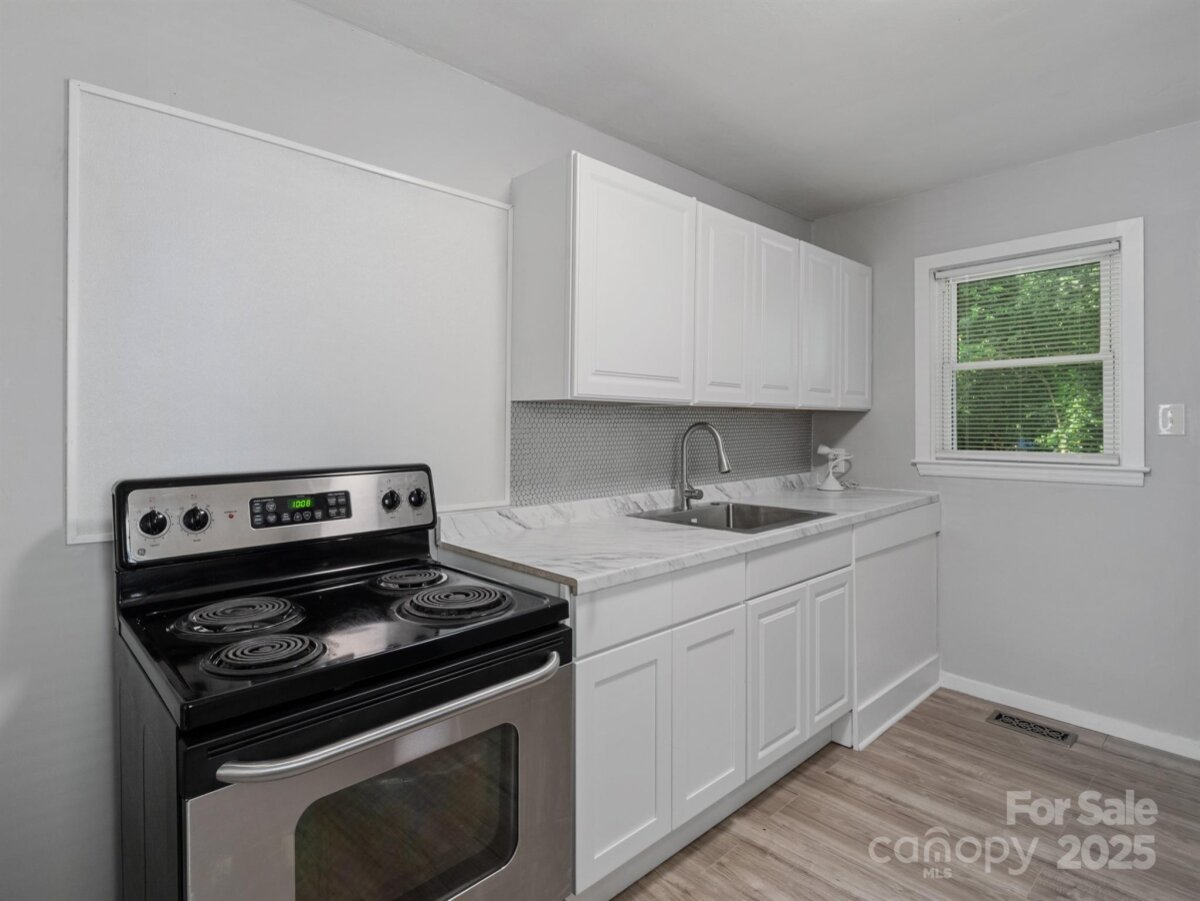 Welcome home to this charming brick bungalow just 4 miles from uptown Charlotte. You can't beat this location and price! You're close to the light rail, minutes from Johnson C Smith University and 2.8 miles to Panther Stadium. Outside, enjoy a 2- car parking pad with fresh rock and mature landscaping featuring hydrangea, hosta, and black-eye Susan surrounding the covered front porch. The fenced yard offers privacy with mature trees and there's plenty of room for a garden. Inside, you'll find beautiful original wood floors in the family room and bedrooms. The Kitchen has been updated. Home being sold AS-IS