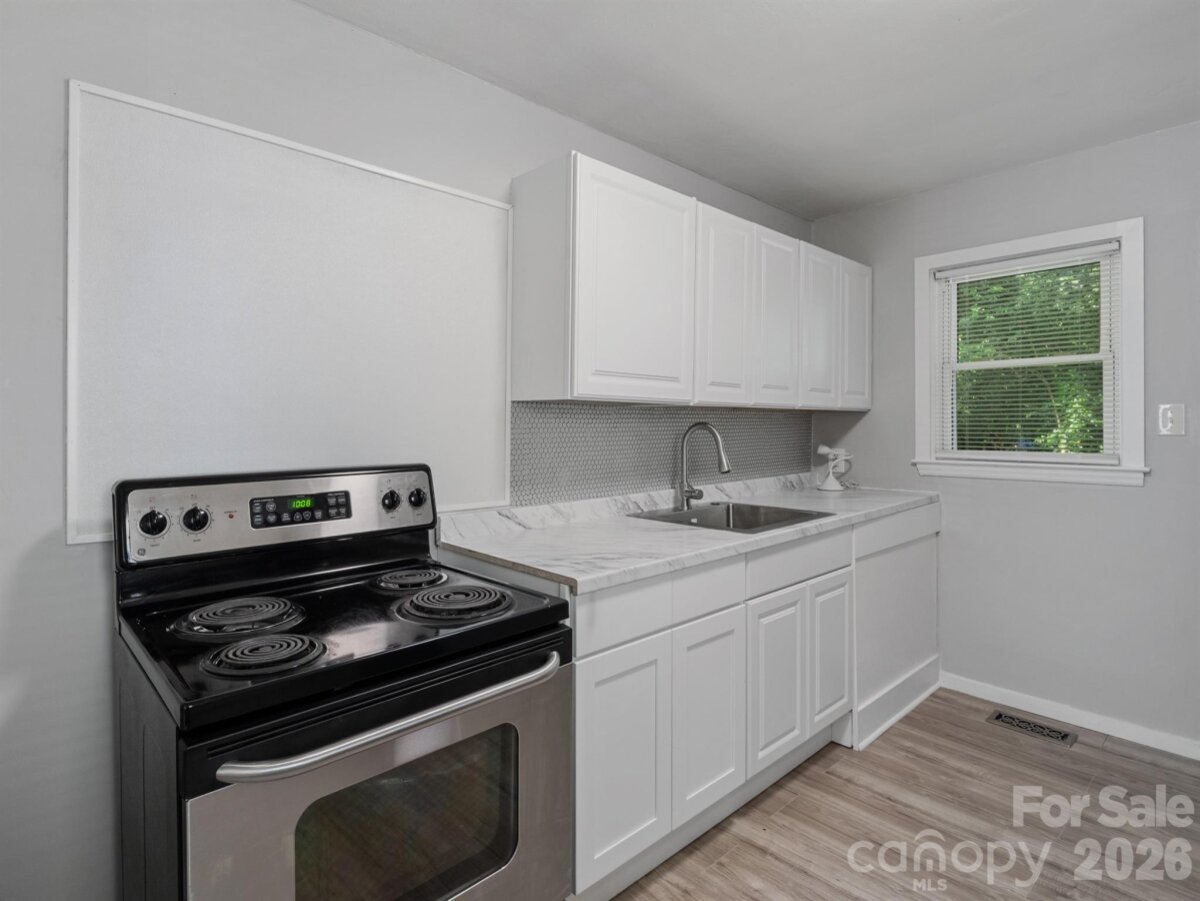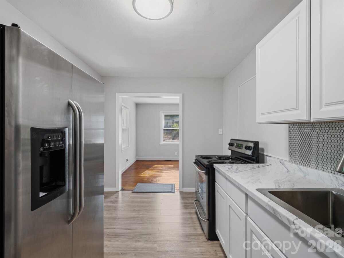 Welcome home to this charming brick bungalow located just 4 miles from Uptown Charlotte, an unbeatable combination of location and value. Conveniently situated near the light rail, just minutes from Johnson C. Smith University, and approximately 2.8 miles from Bank of America Stadium. The exterior features a two-car parking pad with fresh gravel and mature landscaping, including hydrangeas, hostas, and black-eyed Susans, all surrounding a welcoming covered front porch. The fenced yard provides added privacy with mature trees and ample space for gardening or outdoor enjoyment. Inside, you'll find beautiful original hardwood floors in the family room and bedrooms. The kitchen has been updated, and washer/dryer connections have been added for convenience. Washer, dryer, refrigerator, and stove all convey with the property.