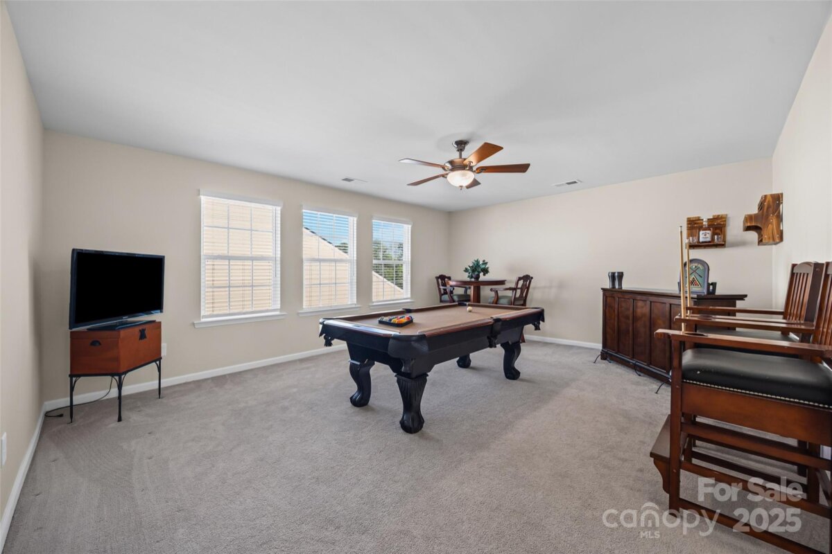 Welcome to 1609 Tranquility Blvd, located in the gated Tree Tops 55+ community, where everyday comfort meets resort-style living. This popular Lennar 1.5-story floor plan offers 3 bedrooms and 3 full bathrooms with a layout that feels welcoming, functional, and perfect for entertaining. The heart of the home is the large kitchen with an oversized granite island, ideal for gathering with friends and family. The kitchen opens effortlessly to the dining area and spacious living room, complete with a gas fireplace. Just off the main living space, the screened porch flows onto a beautiful patio overlooking an outdoor fireplace and a private, wooded backdrop—a peaceful setting to relax and unwind. The primary suite, privately located at the back of the home, features a full bath with a walk-in shower, double vanity, water closet, and a large walk-in closet. Upstairs, guests will appreciate their own private bedroom, full bath, and a generous bonus room, perfect for visits from family and friends. A convenient drop zone off the garage adds everyday practicality, and the recently painted exterior enhances curb appeal. Home is wired with "Smart Home" technology. Living in Tree Tops means embracing a lifestyle. Residents enjoy swimming pools, pickleball and tennis courts, walking trails, scenic lakes, a clubhouse, fitness center, amphitheater, dog park, and community cabins for cards, sewing, and social gatherings. Comfort, convenience, and community—this home delivers it all.