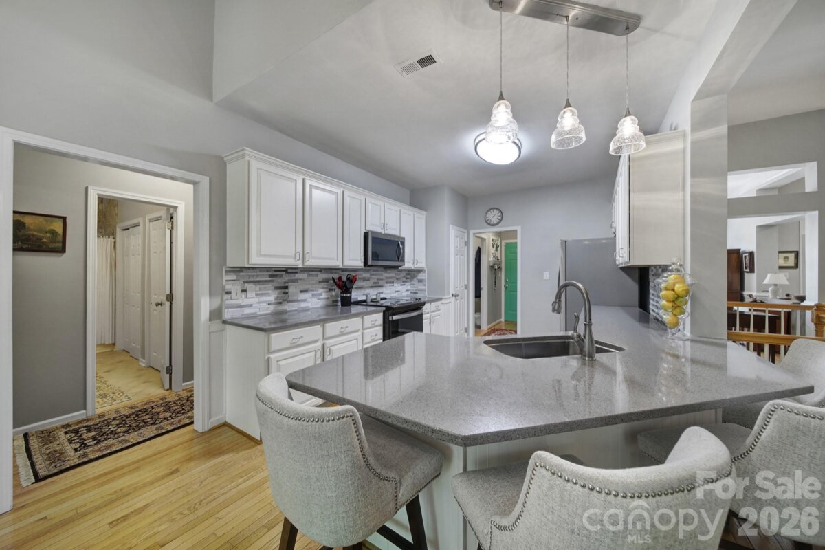 Lake Norman living at its finest in the highly sought-after Fernbrook community in Mooresville. This hard-to-find ranch with a finished, walk-out basement is nestled on a beautifully landscaped lot. Featuring an open concept layout, high ceilings, and gleaming hardwood floors. Kitchen offers generous cabinetry, quartz countertops, tile backsplash, and a breakfast area with a large picture window. Living room with an inviting gas fireplace and formal dining room provide ideal spaces for everyday living or entertaining. A dedicated office with French doors is ideal for working from home. Spacious primary bedroom and ensuite that includes dual vanities, a soaking tub, and separate shower. Two additional bedrooms, a full bath, half bath, and laundry room complete the main level. Walk-out basement provides endless possibilities with additional space for recreation, crafting, or a home theater. Sunroom, deck and patio allow you to enjoy the peaceful backyard with mature trees. Residents of Fernbrook enjoy a community pool, boat launch, sidewalks, and a prime location with convenient access to parks, marinas, shopping, dining, medical facilities, I-77, and Charlotte. Fernbrook is known for its established charm, welcoming neighborhood feel, and desirable Lake Norman location.