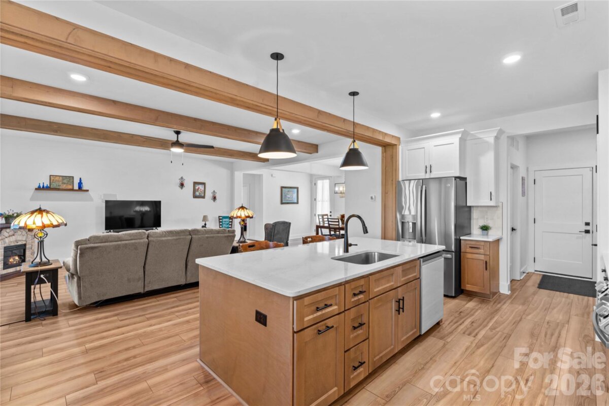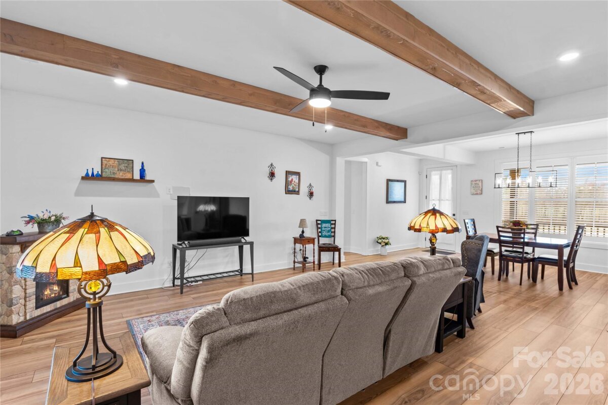 Charming 3-bedroom, 3-bath home with a bonus/flex space upstairs with a full bathroom on 1.5 private acres in Harmony! The kitchen opens to a great room with striking wooden ceiling beams and a convenient butler’s pantry.. Enjoy the large screened-in porch and the covered back deck overlooking the fenced play yard. The primary bedroom features recessed lighting and a huge walk-in closet. The primary bathroom includes a dual vanity, garden tub, tiled shower, natural light, and recessed lighting above the shower. Upgrades throughout include added cabinets and countertop in the room off the kitchen, attic storage, security system, parking pad next to the garage for an RV or trailer, and plantation shutters and blinds on all windows. Sellers have also provided a list of improvements in the attachments. This home combines thoughtful design, modern functionality, and charming details to create a space that is stylish, comfortable, and perfectly suited for seamless indoor and outdoor living on a private, serene lot. Don’t miss out on this exceptional opportunity!
