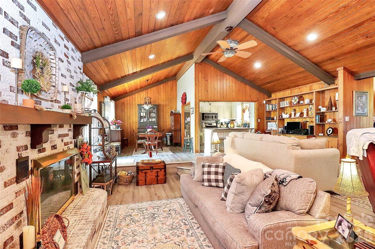 Waterfront on Moss Lake! Stunning home with year-round million-dollar views! This well-maintained 3-bedroom, 2-bath property is full of charm inside and out. Inside, enjoy lake views from every bedroom, a sunroom with a hot tub, and a gas log fireplace in the living room that connects seamlessly to the kitchen and dining area. The spacious primary suite opens directly to the back deck overlooking the lake. The finished basement includes a woodburning fireplace and offers both indoor accessibility and walk-out access to the lake. Outside features a private pier with a covered boat slip and lift, approximately 200 feet of lake frontage, a multi-tiered back deck for entertaining, and an existing invisible fence for pets. Truly a home that makes you feel like you are on vacation while sitting on your own couch or while fishing from your backyard! Additional features include a 2-car garage and a separate upper parking area. Additional 403 SQFT is finished basement not accessible through HLA