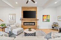 Welcome to this exceptional, fully renovated home in the highly sought-after community of Tega Cay. Completely transformed between 2022 and 2025, this residence blends modern luxury, thoughtful design, and breathtaking golf course and lake views in a truly serene setting. Inside, the home showcases custom hardwood flooring throughout and a stunning chef’s kitchen featuring an artisan wood island, quartz countertops, stainless steel appliances, and an elegant backsplash. The bathrooms have been fully reimagined with tile flooring and showers, beautifully crafted vanities, and refined finishes. Additional highlights include a custom fireplace surround and mantle, Jeld-Wen windows with custom blinds, and a striking modern front entry door that enhances curb appeal. Outdoor living is spaces offer spectacular views, an expanded multi-level deck addition, and professionally designed landscaping with retaining walls and custom hardscaping, new parking pad with three spaces and an expanded driveway with additional two spaces. Structural upgrades include a commercial-grade roof and a fully encapsulated crawl space with dehumidifier and dual sump pumps. Major system upgrades include a complete HVAC replacement with new ductwork, updated electrical throughout, and new plumbing, offering comfort, efficiency, and peace of mind. Located in Tega Cay, a premier lakefront community known for golf, trails, water activities, and top-rated schools, this remarkable home offers a rare combination of luxury, functionality, and scenic beauty.