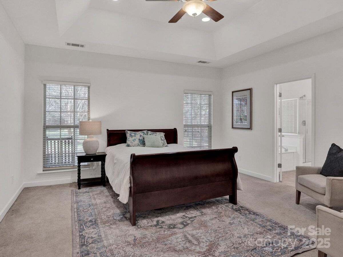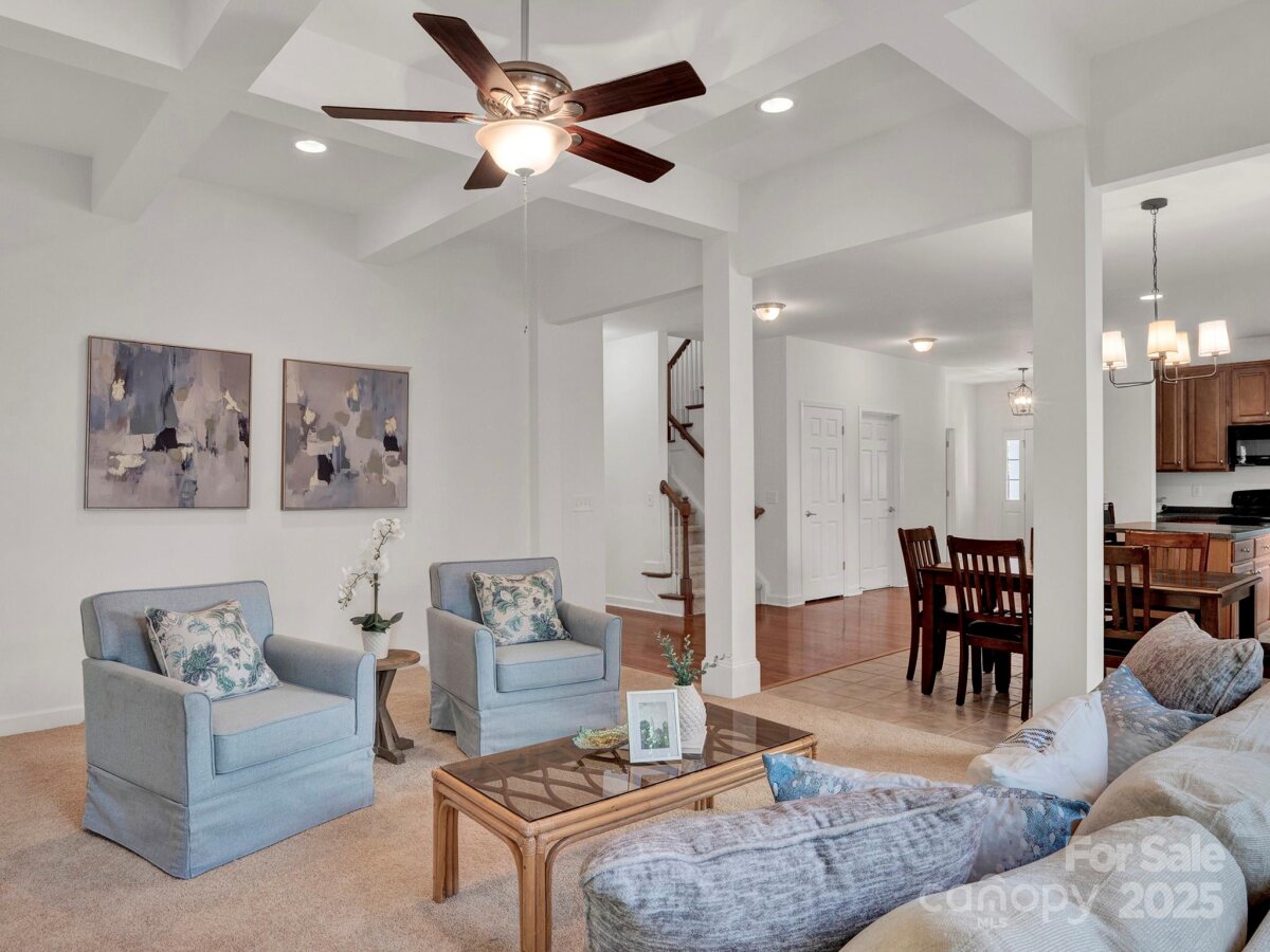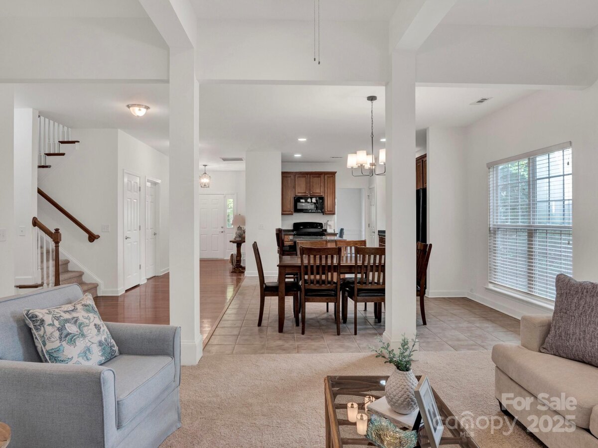 Tucked on a quiet cul-de-sac street in the welcoming Demere subdivision, this cozy brick-front 5-bedroom, 2.5-bath home glows with warmth and charm, framed by mature trees and landscaping that whisper neighborhood serenity. Step inside to a bright, open layout with gleaming hardwood foyer flowing into the inviting family room—anchored by a gas fireplace, coffered ceilings, and then out to the screened porch. Cozy up on soft seating or gather around the coffee table for movie nights that feel just right. The heart-of-home kitchen shines with warm oak cabinets, granite counters, a central island—perfect for casual breakfasts. Adjacent formal dining with wainscoting and chandelier sets the scene for intimate dinners under natural light. The main-level primary suite is your peaceful retreat: a spacious haven with vaulted ceiling, ceiling fan, en-suite bath, and walk-in closet. Upstairs, four bright bedrooms await—like the playful kid's room with soft neutrals, plush bedding, and room for imagination—plus a full bath for easy mornings. Outside, the screened porch beckons with its vaulted ceiling, ceiling fan, and panoramic views of the lush, tree-lined backyard, fully enclosed by privacy fencing. A two-car garage adds everyday ease, all in the top-rated Cuthbertson school district. Minutes from Waxhaw’s small-town charm, 1613 Jekyll Lane feels like home the moment you arrive.