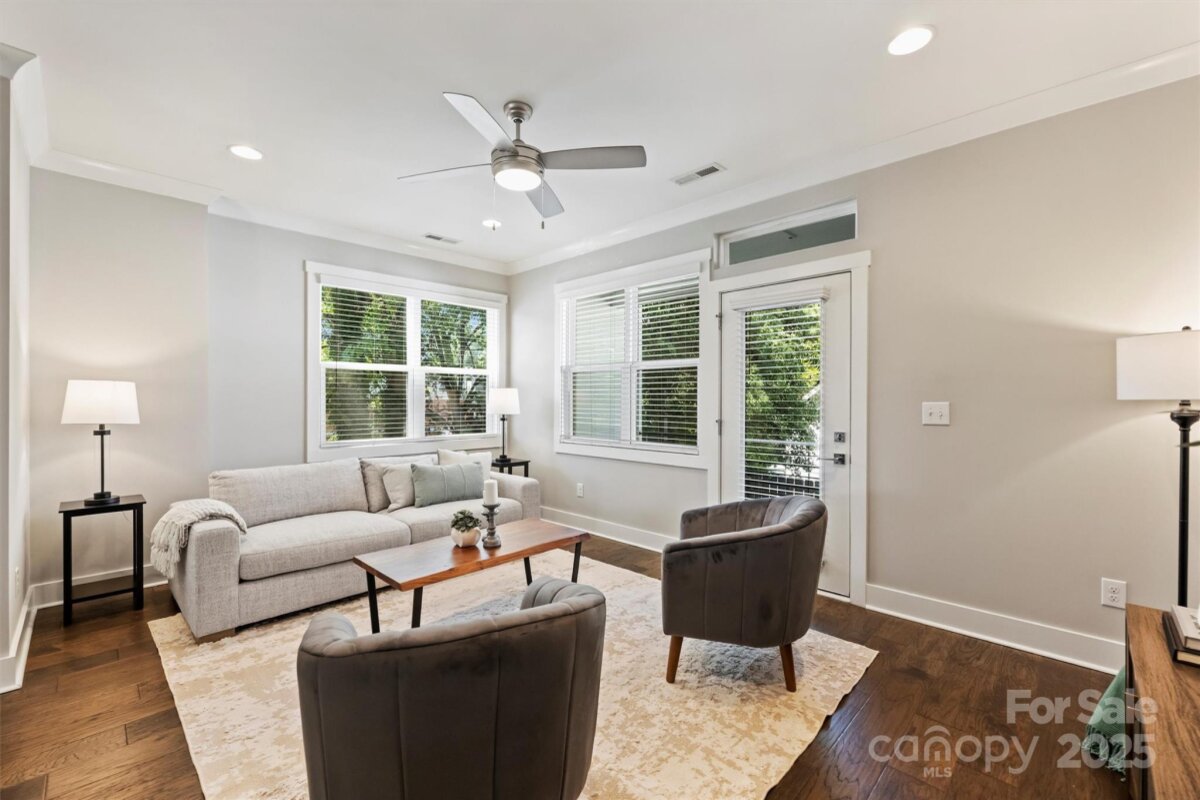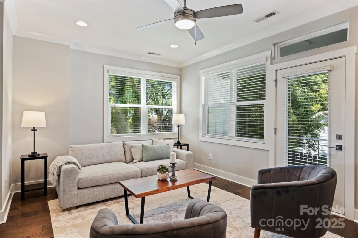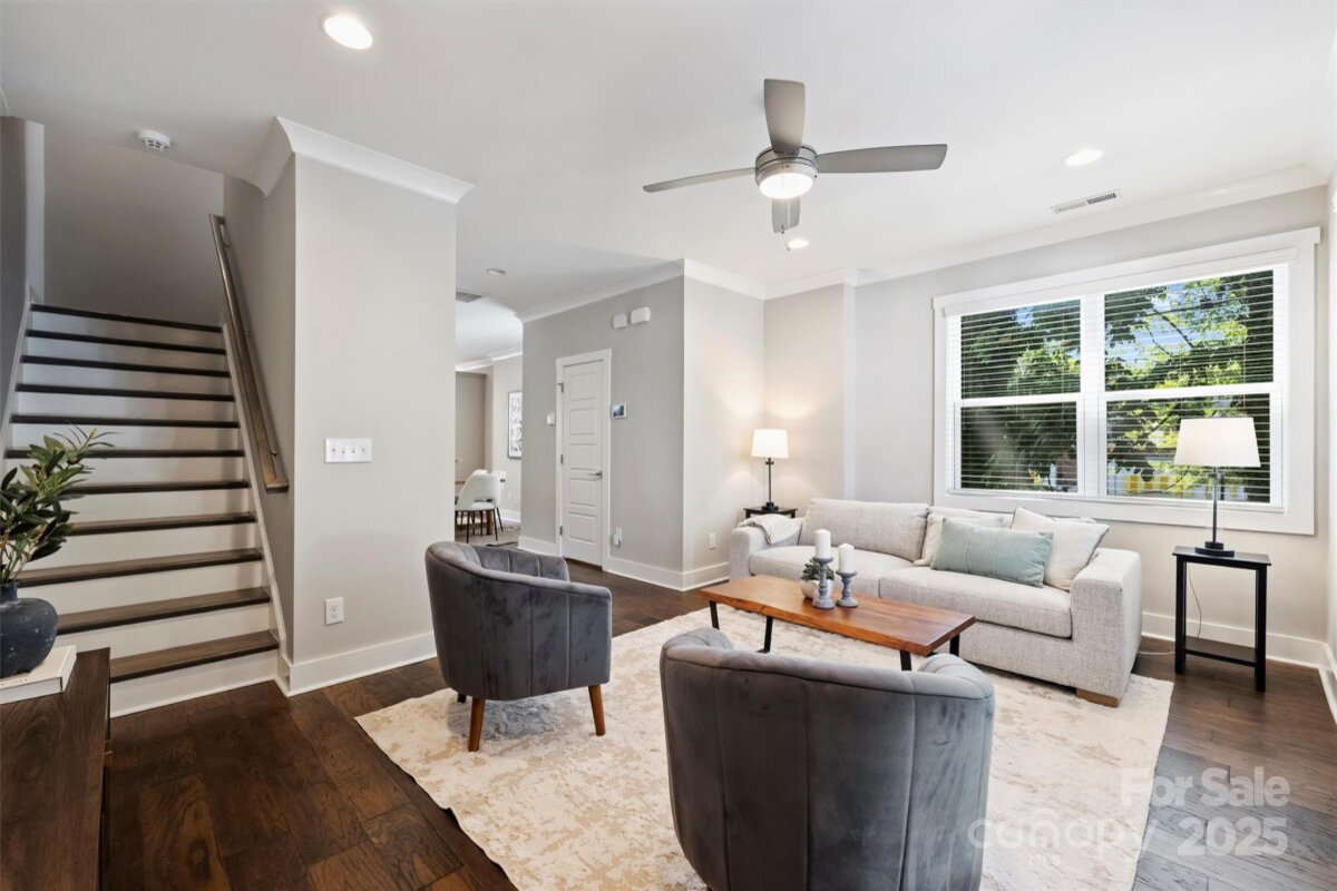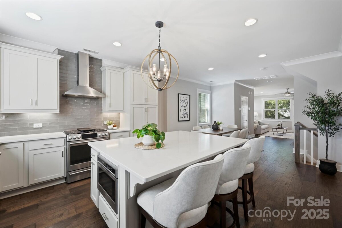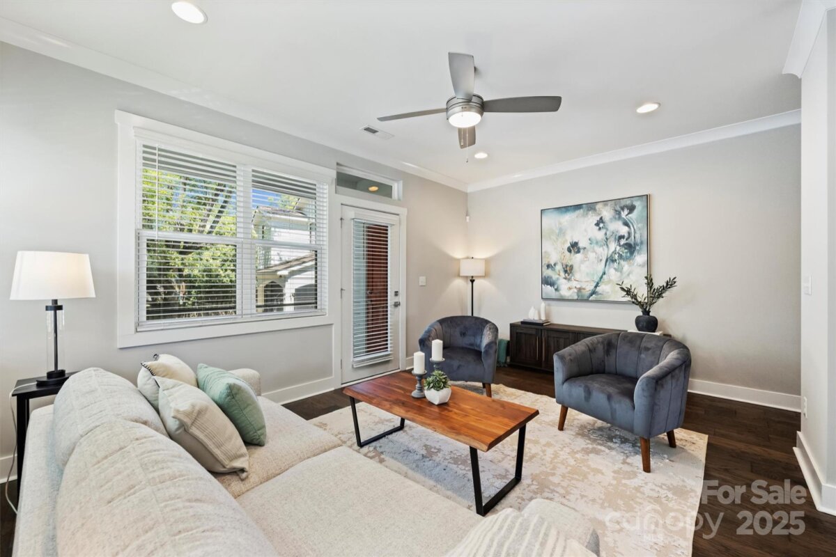 End-unit townhome in the heart of Plaza Midwood! This stylish 3-story residence offers an attached 2-car tandem garage and a versatile laundry/storage room on the main level. The second floor features an open-concept design with a spacious family room, powder room, dining area, and chef’s kitchen. The dining area includes a Butler’s Pantry with a wine fridge, while the kitchen boasts quartz countertops, 42†cabinets, GE Café stainless steel dishwasher, gas range, GE Monogram microwave drawer, and a sleek wall-mounted range hood. A private patio with storage completes the space. Upstairs, the owner’s suite is filled with natural light and includes a spa-inspired bath with dual-sink vanity, quartz counters, water closet, and a large tiled shower. A secondary bedroom on the same level features its own en suite bath and walk-in closet. A stackable laundry closet is conveniently located nearby. Unbeatable proximity to Plaza Midwood’s vibrant bars, restaurants, and shops!