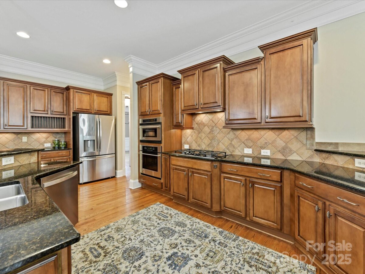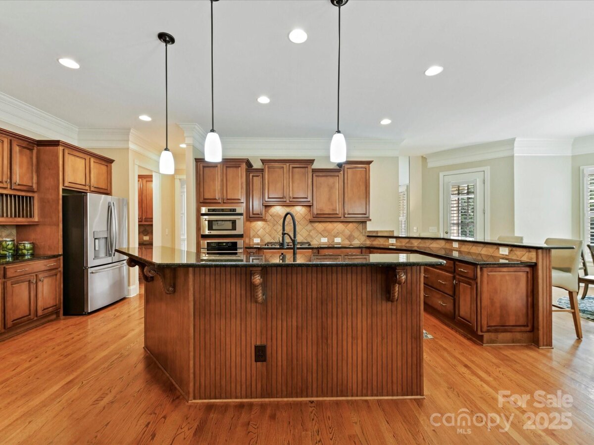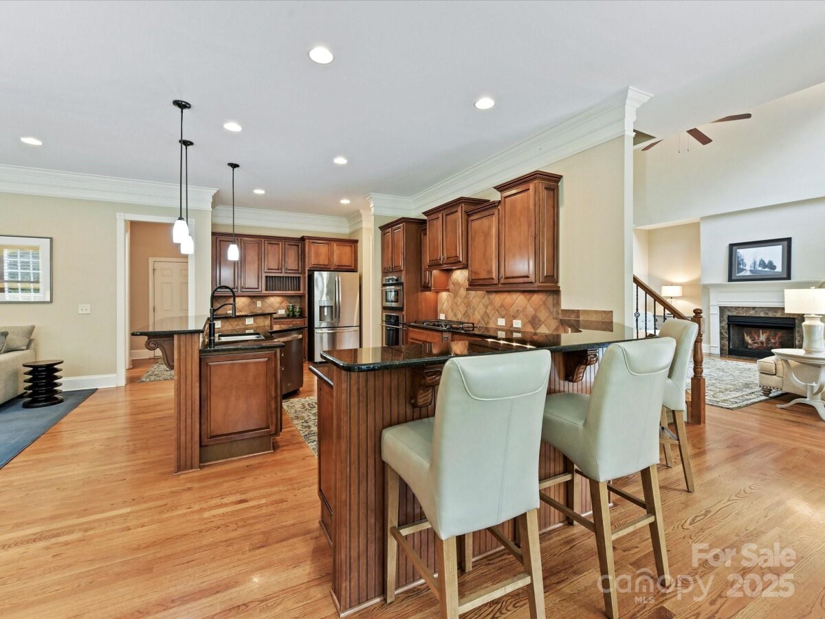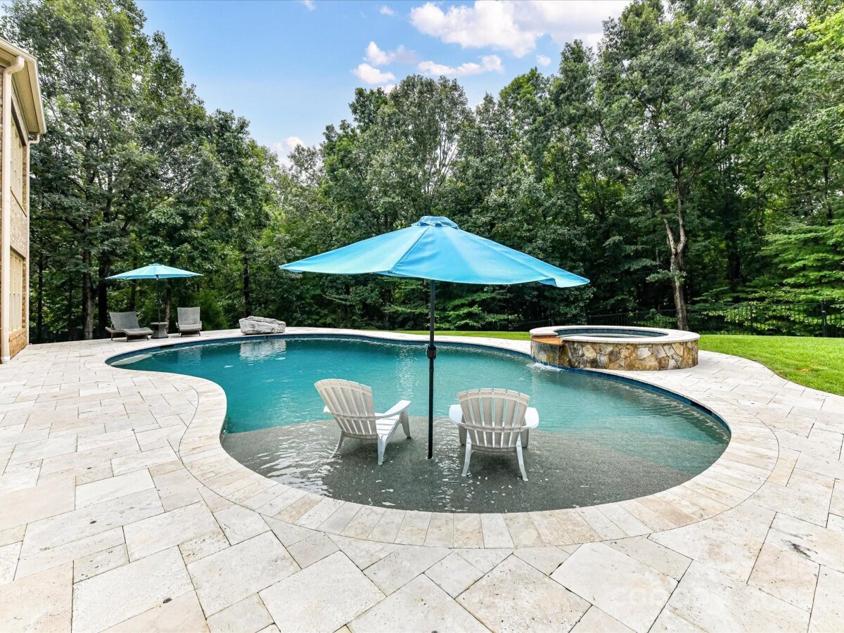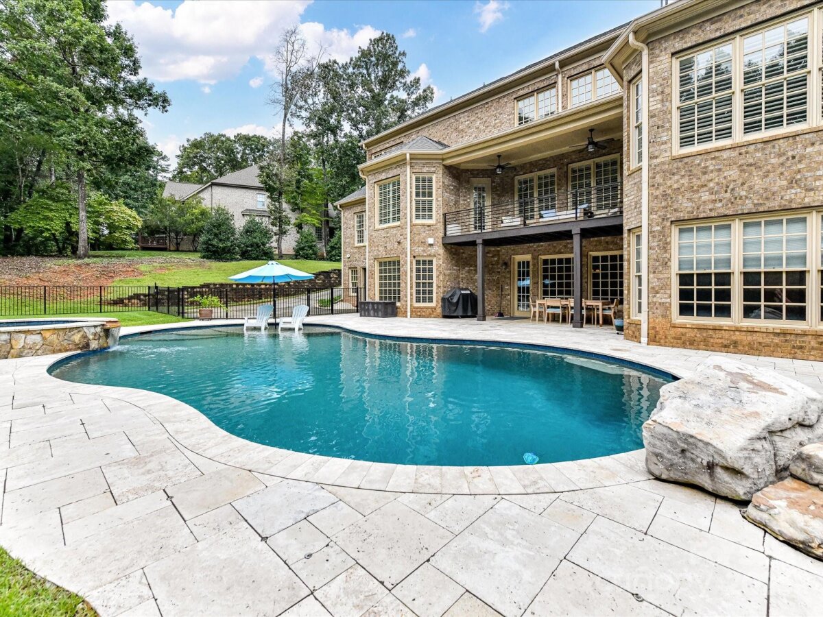 Welcome to this stunning 5-bedroom, 5.5-bath estate that blends timeless elegance with modern comfort. The main level boasts the primary suite with a spa-like ensuite and a grand great room anchored by a beautiful fireplace. A formal living room with its own fireplace adds warmth and charm, while the large kitchen impresses with granite counters, ample storage, and stainless appliances. The private office, located off the landing between the first and second floors, features a cozy fireplace and offers the perfect quiet retreat. Upstairs, you’ll find three spacious bedrooms, each with an attached bath, plus a dedicated theater room. The finished basement expands the living space with a bedroom and full bath, a recreation room with wet bar, and a heated garage area that includes a second rec room. Step outside to your private retreat featuring an inground pool with spa and tanning ledge, extensive patio space, and a fully fenced backyard for added privacy. This home is designed for both everyday living and unforgettable entertaining.