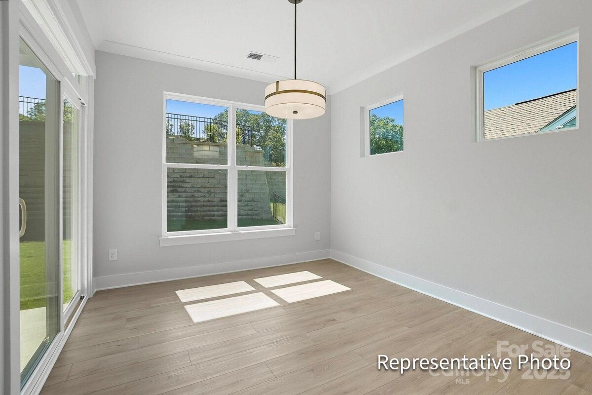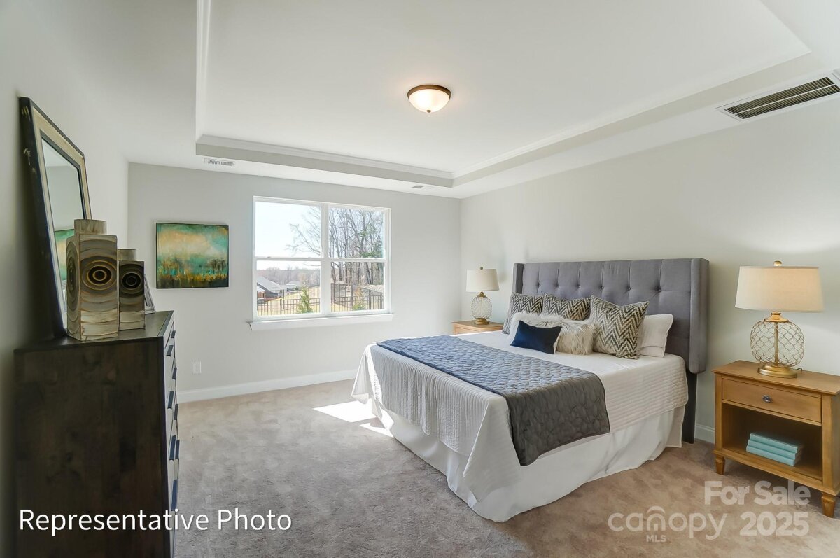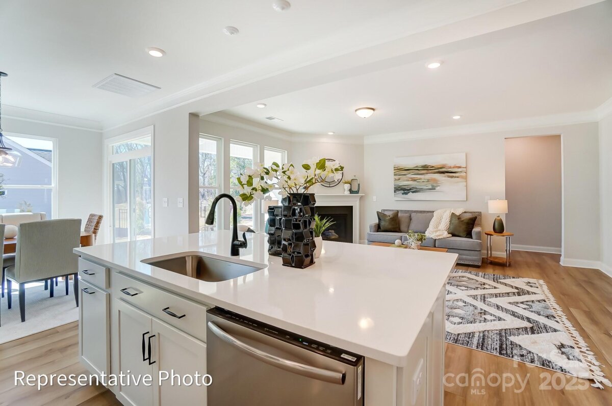 Brand new, boutique community in ideal location minutes to historic Mooresville and Davidson. Less than three miles from I-77 and close to shopping, dining and other conveniences. This gorgeous ranch-style Avery floorplan includes an upper floor with loft, bedroom and bath. This plan features an open kitchen with breakfast area that leads into the family room. The kitchen includes quartz countertops, tile backsplash and stainless appliances, including a gas range. Primary bedroom on the main features tray ceiling and primary bath includes a tiled shower, with a bench seat, two vanity sinks and tiled flooring. The main floor also includes two additional bedrooms, a second full bath, laundry room! Exciting features include a gas fireplace with slate surround in the family room and more! Enjoy the outdoors on the rear covered porch! Community features nearby nature trails and includes lawn maintenance.