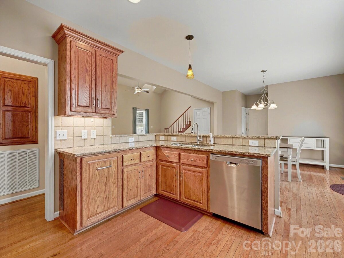 Move-in ready home for sale in Concord on a rare 0.94 acre lot with no HOA. This immaculate 2,292 square foot home offers a highly desirable floor plan with a primary suite and guest room on the main level, plus two additional bedrooms upstairs connected by a Jack and Jill bathroom. The main level features hardwood floors throughout, a spacious living area, and an open kitchen with granite countertops and stainless steel appliances. The kitchen flows easily into the main living space and provides access to the deck, making it convenient for everyday living and outdoor enjoyment. A dedicated laundry room is also located on the main level. The large primary bedroom on the main floor includes a custom walk-in closet and a generous primary bathroom with dual vanity, separate corner tub, and walk-in shower. The additional main-level guest room is ideal for visitors or multi-generational living. Upstairs, two bedrooms share a Jack and Jill bathroom, plus a loft for a great reading space or homeschool zone. Carpet is featured throughout the upstairs living areas, with tile flooring in all bathrooms. Outside, the nearly one acre lot offers mature trees at the rear for added privacy, along with a storage shed. The 2-car garage is oversized and finished with separate pedestrian door. The home is well maintained, clean, and truly move-in ready.