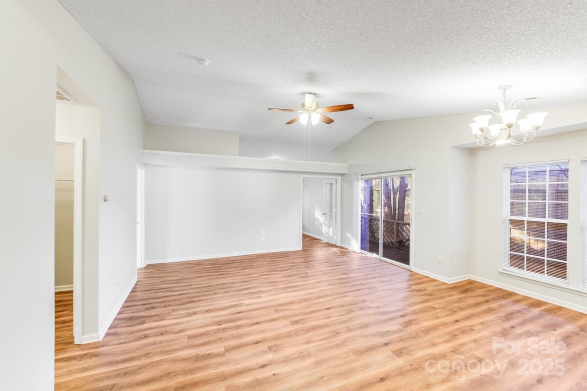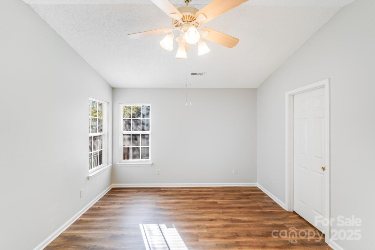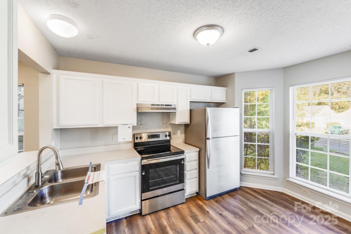 Step into this beautifully maintained home where natural light pours through large windows, highlighting the spacious interior and creating a warm, welcoming atmosphere. Featuring 3 beds and 2 baths in Charlotte, NC. The living room boasts a stunning vaulted ceiling, enhancing the sense of space and comfort—perfect for relaxing or entertaining. The kitchen is a modern delight, featuring stainless steel appliances, dual sink, sleek white cabinets, and ample counter space for cooking and hosting. The primary bedroom offers a private sanctuary with a generous walk-in closet and an en-suite bath, creating a peaceful space to unwind at the end of the day. 3rd Bedroom / Bonus does not have a closet or a door. It can be used as an office or closed off. Enjoy the outdoors in your fully fenced backyard—ideal for pets, gardening, or weekend gatherings. Conveniently located in a quiet neighborhood with easy access to major routes, shopping, and dining, this home offers the perfect blend of comfort and convenience.