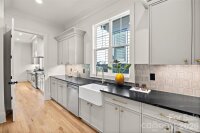 Luxurious new construction by esteemed Alenky Signature Homes in the heart of Plaza Midwood. This thoughtfully designed residence offers approximately 3,644 square feet with 4 bedrooms plus a flexible 5th bedroom or study and 3.5 baths, blending timeless architecture such as cedar corbels and custom cedar wood garage door with elevated modern finishes throughout. A welcoming entry introduces refined details including arched openings, custom wall trim, and site-finished hardwood floors. The open-concept layout is ideal for both everyday living and entertaining, anchored by a designer kitchen featuring premium JennAir appliances, custom cabinetry, oversized island, and seamless connection to an expansive scullery with additional sink, dishwasher, refrigerator, and a clever pass-through counter to the drop zone to the scullery - allowing for easy unloading of groceries and perfect for hosting with ease. A thoughtfully designed drop zone with built-in seating adds everyday functionality with style. The living room is a true showpiece with custom built-ins, a fireplace with cast stone façade, and a striking coffered ceiling. The dining room impresses with arched judge’s paneling and a built-in dry bar, creating a sophisticated setting for gatherings large and small. A set of retracting glass doors allow the living spaces to flow effortlessly outdoors to a covered porch with fireplace, offering year-round enjoyment and access to the beautiful and gracious fenced rear yard. The primary suite is a private retreat featuring a spa-inspired bath with oversized curbless shower, soaking tub, double vanities, and a custom walk-in closet. Each secondary bedroom enjoys direct access to a bathroom, ensuring comfort and privacy throughout. Exceptional construction highlights include a brick veneer exterior, architectural roof, sealed conditioned crawlspace, poured concrete driveway, energy-efficient systems, tankless water heater, high-performance HVAC, LED lighting, Cat6 wiring, and EV-charging pre-wire—reflecting both quality craftsmanship and forward-thinking design. Perfectly situated on a prime Plaza Midwood lot just moments from neighborhood restaurants, breweries, parks, shops, and schools, this is a rare opportunity to secure a luxury home by one of Charlotte’s most respected builders in one of the city’s most vibrant neighborhoods.