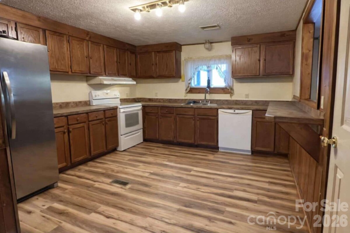 This is a charming, country, ranch style home on dead end st loc between Asheville, Charlotte & Spartanburg. It has an open flr plan. This is solid mfd home with front & back covered porches. Has handi-cap access from rear porch to garage. The yard is fenced except front. It has a pond with a fountain feature & colored lights at night. The property has 6 outside water spigots. There are newer mini split heating/AC units. New vinyl wood-looking planks in kit & master bdrm. New kit countertops and new frig negotiable based on offer. Real wood V-Joint on the walls created by homeowner in main living area. Large master bdrm has HUGE walk-in closet, HUGE bath with 8' counter with his & her sinks, new cabs. The master bath has walk-in shower & HUGE closet. There is a two car carport that has been enclosed with a workshop on one side. If your looking for storage this home has it. AI has been used on some pics showing space without furniture. Selling AS IS!