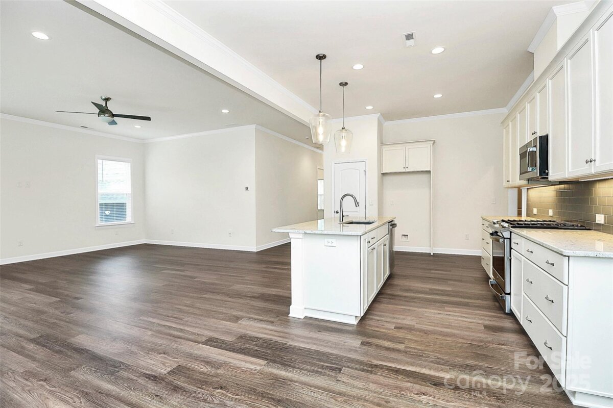 Experience modern living in this pristine, never-before-occupied 4-bedroom, 2.5-bathroom home, encompassing 2,478 sq/ft of thoughtfully designed space. Situated on a generous 0.27-acre lot within the single street cul-de-sac Kensley community. Open-concept floor plan with LVP flooring throughout the main living areas, providing durability and elegance. Equipped with modern appliances, ample cabinetry, a walk-in pantry, and a large island, perfect for culinary enthusiasts. Expansive sliding glass doors lead to a covered back porch, seamlessly blending indoor comfort with outdoor relaxation. The flat and usable backyard offers ample space for gardening, play, or future enhancements. Approximately 2 miles from I-85, facilitating easy commutes to Charlotte and surrounding areas. Close proximity to Concord Mills, Gibson Mill Market, and a variety of local boutiques and eateries in downtown Concord. Schedule your showing of this never-lived-in home today!