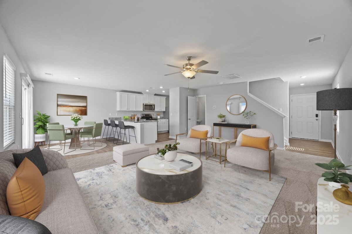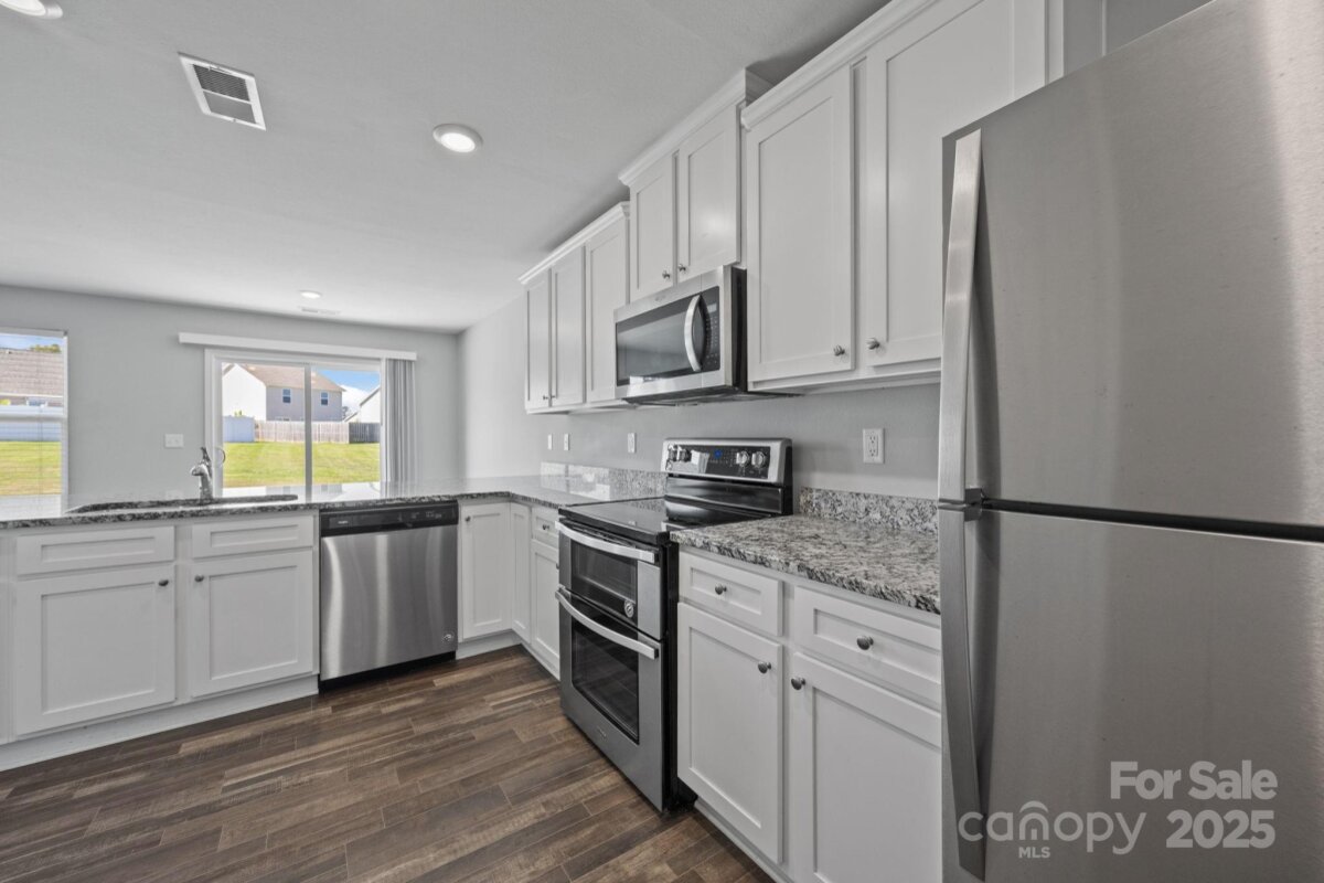 Welcome Home! This beautifully maintained 3-bedroom, 2.5-bath residence sits on an over 1/2 acre private lot! Offering the comfort of a nearly new build—with the feel of an established neighborhood. The open-concept layout feels bright and airy, featuring neutral carpeting, and an abundance of natural light throughout the main living area. The kitchen will delight any home chef with its stainless-steel appliances, double oven range and generous counter space. A large granite breakfast bar anchors the space, perfect for casual meals or entertaining guests. Upstairs, the light-filled primary suite features vaulted ceilings, a walk-in closet, and a private ensuite bath. The split bedroom design provides added privacy, while the spacious secondary bedrooms offer excellent flexibility for guests, home office, or hobbies. Step outside to an oversized patio overlooking one of the neighborhood’s largest lots—with great level usable yard space. It’s ideal for outdoor gatherings, play, or simply relaxing in your own backyard retreat. Close to downtown Kings mountain, shopping, dining, parks and only 2 miles from the new casino coming in 2026!