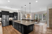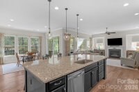 The details are the point in this meticulously maintained ranch with a finished basement and wooded views in The Palisades, Charlotte. Two suites on the main, a finished basement below — the kind of layout buyers search for and rarely find. Stone-accented front porch, soaring entry door, 10-foot ceilings, wide plank hardwood floors throughout the main level, crown moulding, custom lighting, and a kitchen built around a massive center island. The kitchen is the home's quiet showpiece with tile backsplash, walk-in pantry, and under-and-over cabinet lighting, 36-inch gas cooktop and wall oven. The primary suite is on the main level, private, huge custom tile shower and deep garden tub, walk-in closet and large picture windows showcasing the wooded nature outside. The guest suite is also on the main level with a full en suite with tiled shower. Step through the sliding glass doors to the generous screened porch with seasonal views of Lake Wylie through the tree line. Enjoy the outdoors more on the extended deck with composite decking and black vinyl railings. The open, south-facing layout floods over 2,500 square feet of main level living with natural light from morning through afternoon. In a quiet area of The Palisades with no through traffic, it's the kind of stillness that cannot be added later. The finished walkout basement expands the home considerably. A second living area, bedroom, full bath, and gym space make it a natural extension of the main level, or the foundation for a second living quarters. Beyond the finished area, an expansive unfinished section, over 1,600 sf, offers serious storage and genuine potential. A lower covered porch off the basement creates an indoor-outdoor rhythm across both levels. This home has been meticulously cared for. Professionally cleaned on a regular basis, HVAC-serviced regularly, and carries an active termite warranty. Front and rear in-ground irrigation. Neutral, elegant custom draperies remain with the home. The Palisades wraps this home in resort-style living. Pools, fitness center, pickleball, tennis, basketball, walking trails, and a residents' clubhouse within walking distance. The Palisades Country Club — Jack Nicklaus designed golf, tennis, pickleball, pool, and onsite dining — available by optional membership.