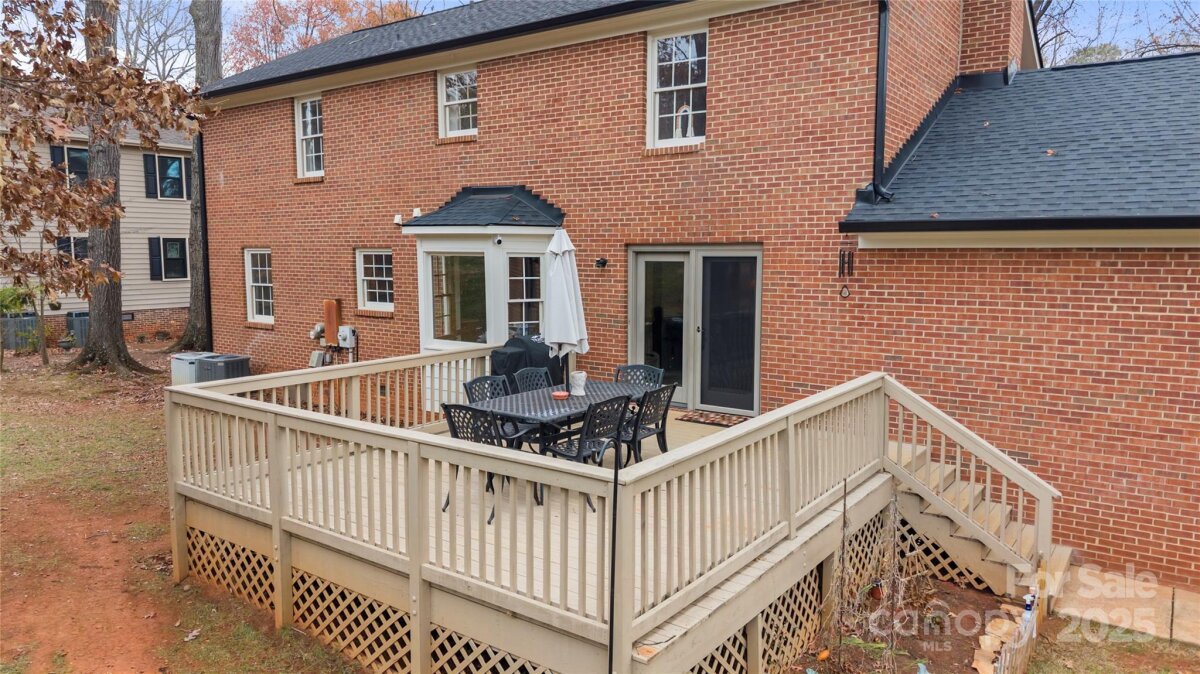 Welcome to 16417 Kimbolten Drive, a charming full-brick home situated on just under half an acre in the desirable Breckenridge community. This inviting residence features a spacious family room with a cozy wood-burning fireplace and direct access to the outdoor deck, ideal for relaxing or entertaining. The kitchen is equipped with stainless steel appliances, a sunny breakfast nook, and a conveniently located laundry closet. A formal dining room and a half bath complete the main level. Upstairs, the primary suite offers a walk-in closet and an ensuite bath with a walk-in shower and single vanity. Three additional bedrooms and a full bath complete the upper level. Outdoor living is enhanced by a deck overlooking the backyard, along with a detached shed that provides additional storage for tools, equipment, or recreational gear. The Breckenridge community features a voluntary HOA and an ideal location close to Birkdale Village, Lake Norman access points, shopping, dining, grocery stores, greenways, and everyday conveniences, with easy access to I-77. Notable updates include a new roof, gutters, and freshly painted exterior trim, windows, garage door, front door, and soffits (2024). Additional improvements include a new water heater (2023), an encapsulated crawlspace with a new vapor barrier and dehumidifier (2023), and recent masonry work featuring tuck pointing and the installation of a new garage lintel (2024). With major updates already completed, this home is ready for your personal touch. Come experience everything this property has to offer!