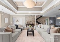 This stunning 4.2-acre estate offers luxury, privacy, and seasonal lake views—all without HOA restrictions. The open floor plan features a grand living room with a fireplace, a gourmet kitchen with an oversized island, and a cozy den with its own fireplace. The main level boasts two spacious bedroom suites, each with an exquisitely tiled bath and generous closet space. Upstairs, two additional bedrooms share a stylish Jack and Jill bath. A full apartment above the garage offers complete independent living, featuring a full kitchen, large living and seating area, a separate bedroom, and a private bath—ideal for guests or multigenerational living. Outdoors, a fire pit invites year-round gatherings, while the expansive grounds offer room for a pool, tennis courts, or future enhancements. An oversized three-car garage adds convenience and storage. A rare opportunity to create your dream retreat just moments from The Palisades.