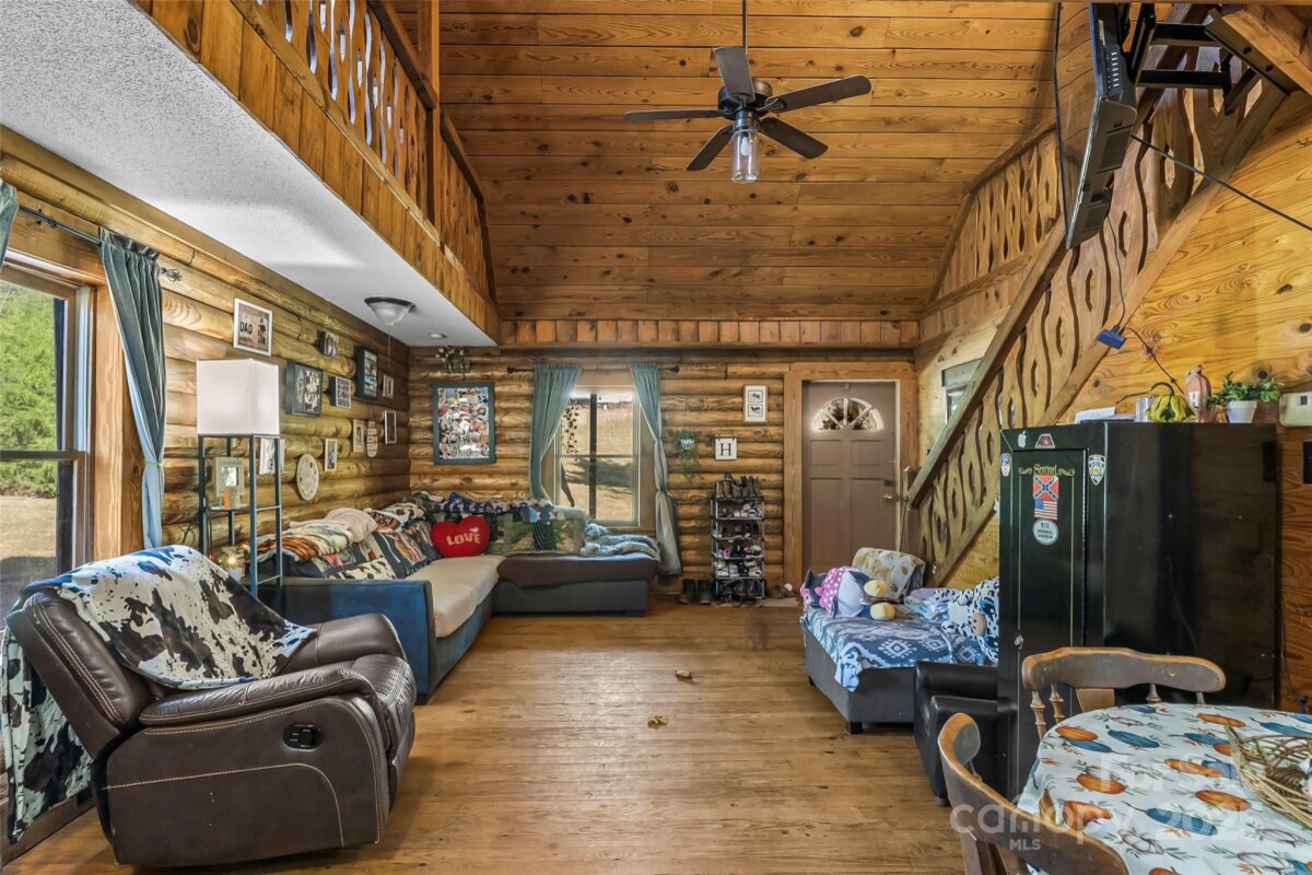 Welcome to your riverfront escape! This charming 3-bedroom, 2-bath log cabin offers 1,512 sq. ft. of rustic warmth and modern comfort on 1.37 acres in Rutherford County. Built in 1999, the home features a welcoming front porch, a bright sunroom, and an additional office space—perfect for remote work or hobbies. Enjoy beautiful views of the Broad River with hundreds of feet of accessible river frontage, ideal for summertime swimming, tubing, or simply taking in the peaceful surroundings from your own backyard. The kitchen includes stainless steel appliances—stove, refrigerator, dishwasher, and microwave—all ready for your move-in convenience. A 40x60 workshop with concrete floors, power, and water hookups offers endless possibilities for projects, storage, or a home business. This property blends the charm of log cabin living with privacy, space, and the beauty of the river—all just a short drive from town amenities.