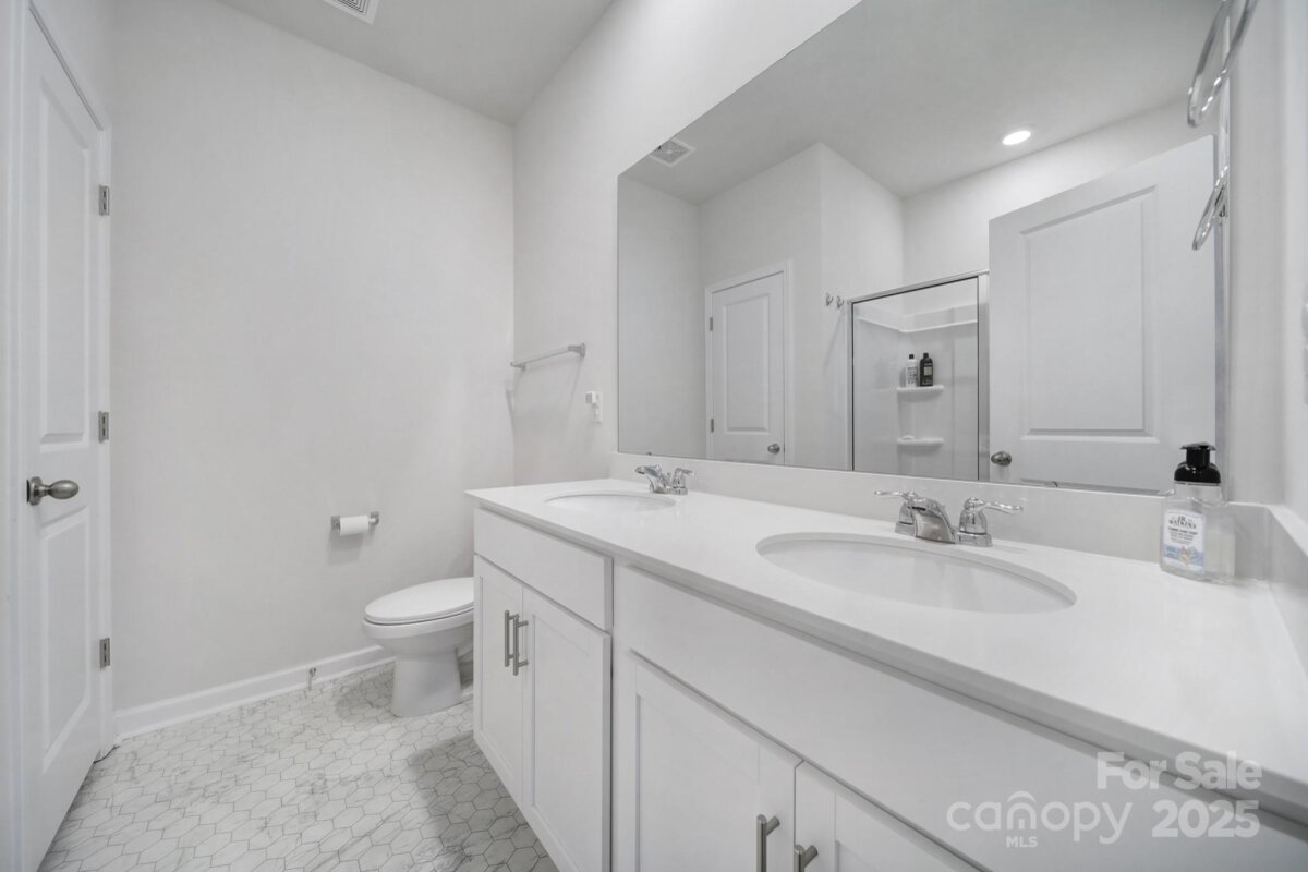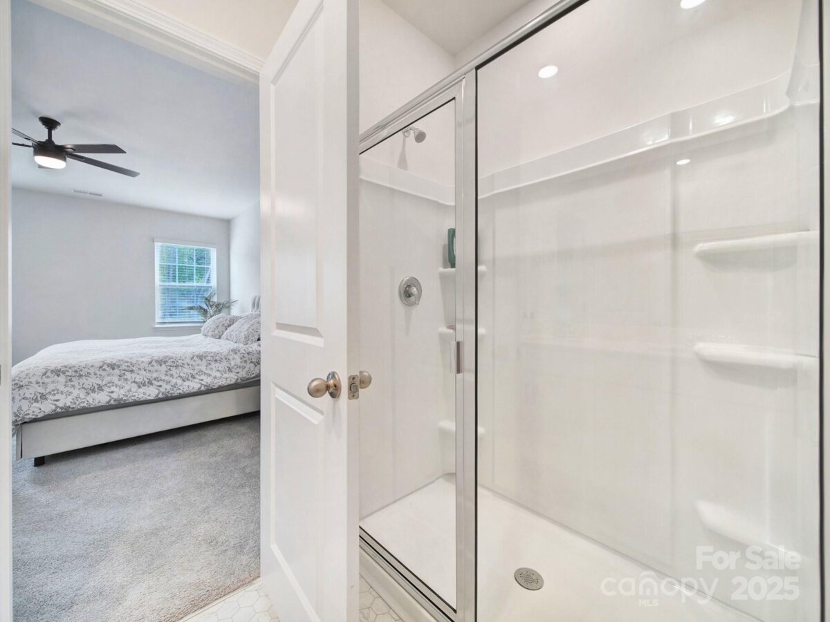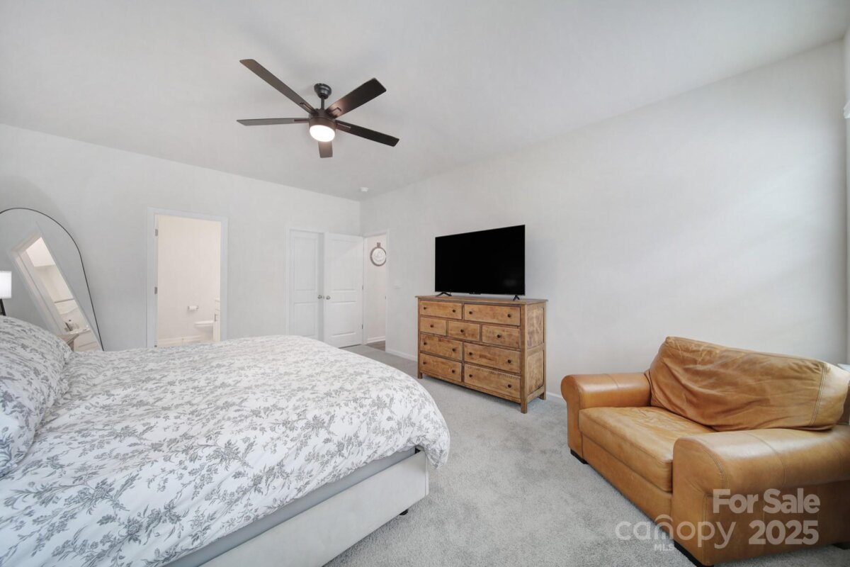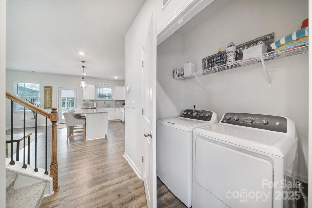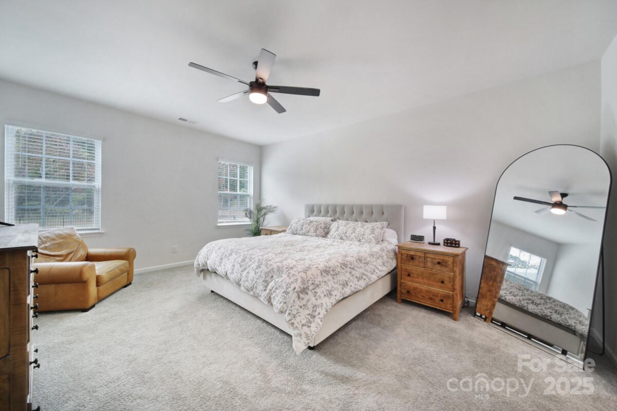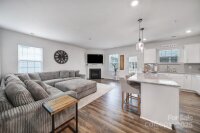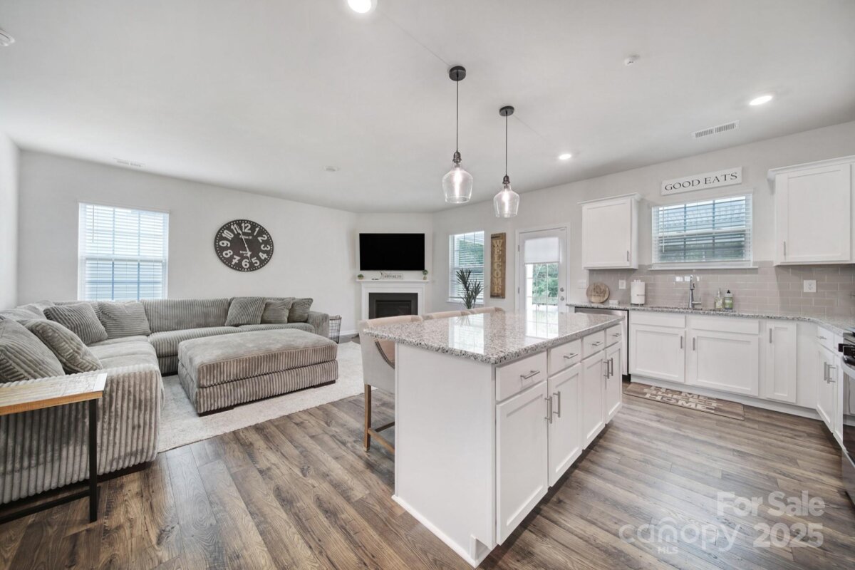 Welcome to this beautiful 4 bedroom, 3.5 bathroom, like-new home in Troutman's desirable Calvin Creek community. Charming front porch invites you inside this open concept layout featuring premium laminate wood flooring and neutral paint. Kitchen boasts white Shaker cabinets, granite countertops, subway tile backsplash, gas range, and island with seating. Family room with a cozy gas fireplace and dining/flex room with abundant natural light are perfect for relaxing or entertaining. Primary bedroom is conveniently located on the main level and includes a walk-in closet and ensuite with dual sinks and oversized shower. Upstairs, you’ll find an additional primary bedroom or guest suite with an attached bathroom. There are two more bedrooms, a full bathroom, and a spacious loft area. Fabulous tree-lined, fenced backyard with a partially covered, extended patio. Enjoy the community amenities, including a pool and playground. Ideally located just minutes from Downtown Troutman, Mooresville, Lake Norman State Park, and I-77.