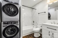 Completely rebuilt and move-in ready! This beautifully renovated 2-bedroom, 1-bath tiny home has been upgraded from the studs and joists up, with all work inspected and approved by Cabarrus County Building Standards. Enjoy peace of mind with a new HVAC system, plumbing, electrical, insulation, fixtures, and appliances—everything is new. Inside, you’ll find new luxury vinyl plank flooring throughout, fresh paint, and new wood trim, creating a modern, cohesive feel. The kitchen features brand-new cabinets, stainless steel appliances, and a French door refrigerator. The bathroom showcases stylish tile finishes. A new stackable washer and dryer adds everyday convenience. Outside, the property offers a new concrete driveway accommodating two vehicles, plus a new wood fence enclosing the property perimeter. Located in a growing and developing community with new construction nearby, and just minutes to downtown Concord, this home offers modern comfort in a prime location. Listing Agent related to seller.