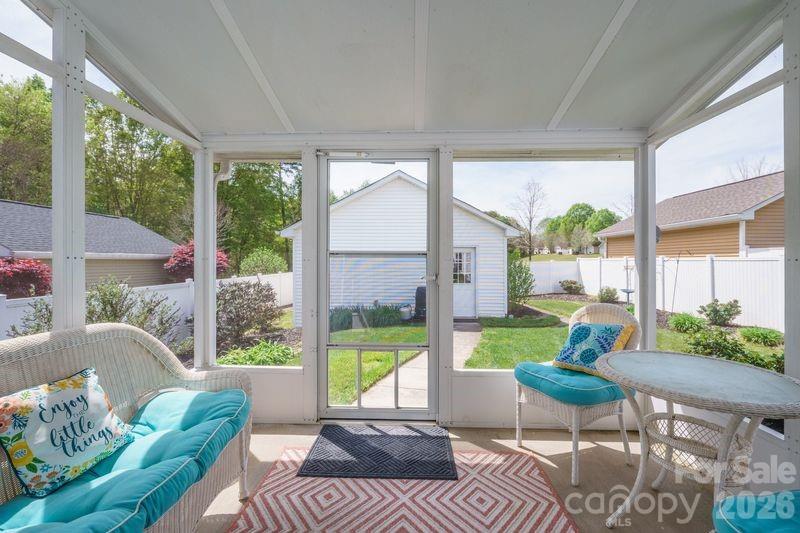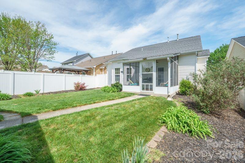 Set near end of quiet tree lined street with full covered front porch, low maintenance vinyl sided w cedar shake accent. Ranch style easy living with Primary BR having remodeled bath, walk in closet and LVP flooring throughout the home. Kitchen is masterfully remodeled with quartz counters, white cabinetry, stainless appliances and beautiul tile backsplash all open to your vaulted ceiling Great room and open dining concept. With your screened in porch on the private rear of home, keep that back door open for a lovely breeze thru the home much of the year. Lush backyard all private with white fencing surrounding for total privacy while enjoying the rear yard for gardening or playing with a pet or children. Detached 2 car garage is accessed on back ally road very private and overlooking a community pond, Serene setting! You will love the light colored paint throughout the home that gives a light bright feel while being neutral coloring for furnishings. Home has water filtration system in kitchen and instant hot water! Calling for best offers by Monday the 13th at noon! Seller prefers a 30 day close and no contingencies!