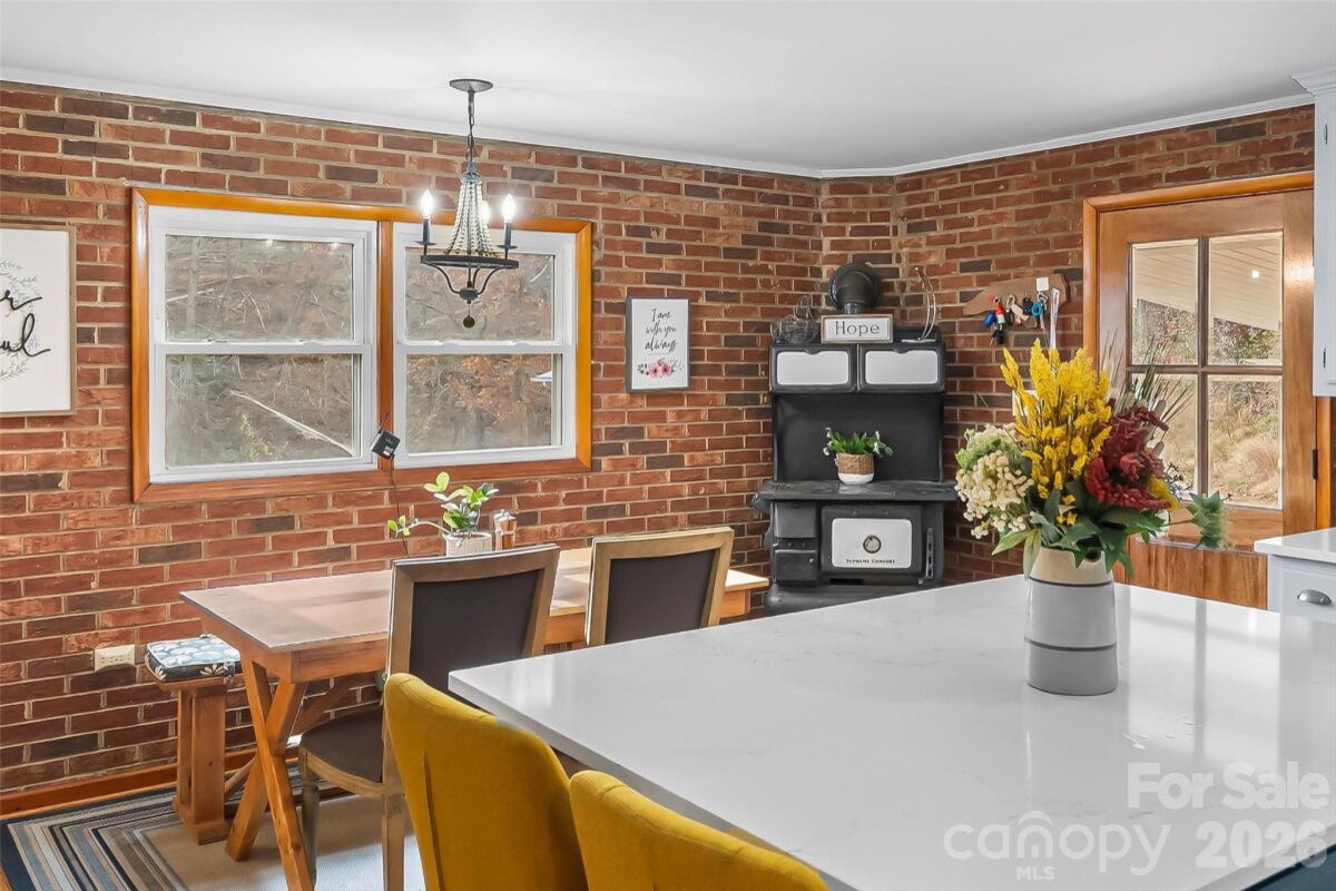 1654 Goose Creek Rd in Marion NC! Welcome to your dream country retreat where the charm of rural living meets modern comfort in this delightful one-level brick rancher that's ready to steal your heart. Step inside and discover a thoughtfully designed floor plan that flows effortlessly from room to room, making everyday living feel like a breeze. The eat-in kitchen has been beautifully updated and features a wood burning stove that transforms chilly evenings into cozy gatherings filled with warmth and wonderful aromas. There's something magical about cooking dinner while the gentle crackle of a fire sets the perfect ambiance. The spacious living room serves as the heart of this home, offering generous square footage that welcomes family and friends for memorable get-togethers. A charming fireplace anchors this inviting space, providing yet another source of warmth and creating an irresistible focal point that draws everyone in. Three comfortable bedrooms provide plenty of space for family members or guests, while two freshly updated bathrooms ensure convenience for the entire household. The recent interior improvements throughout the home mean you can simply move in and start enjoying your new lifestyle without the hassle of renovations. Now let's venture outside, because this is where the magic truly happens. The screened sunroom offers the perfect transition between indoor comfort and outdoor beauty, allowing you to soak in the peaceful views while staying protected from the elements. Imagine sipping your morning coffee here while watching the sunrise paint the sky in brilliant colors. The expansive barn is a genuine showstopper, featuring multiple stalls, a dedicated tack room, wash area, and generous feed storage. Whether you're an experienced equestrian or simply dream of caring for farm animals, this setup has everything you need to make that vision a reality. Two separately fenced pastures provide ample grazing space for horses or whatever four-legged friends capture your heart. A detached outbuilding offers additional storage that every hobby farmer needs, while both the detached and attached carports ensure your vehicles and equipment stay protected with plenty of parking space to spare. The newer roof provides peace of mind for years to come. This property represents a rare opportunity to embrace the farm life you've always imagined or to continue the agricultural adventure you've already begun. Nearly twelve hundred and fifty square feet of comfortable living space combined with incredible outdoor amenities creates a lifestyle that many dream about but few get to experience. Don't let this opportunity trot away. Schedule your private showing today and discover why this charming rancher could be the perfect place to write your next chapter.