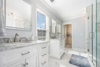 Fall in love with this full-brick home featuring modern upgrades and exceptional outdoor living, where style and comfort meet in every detail. The kitchen is a true showstopper, boasting a stunning white quartz island and countertops, a large stainless-steel farmhouse sink, updated stainless-steel appliances, and a fully shelved walk-in pantry. Custom built-in shelving in the family room creates a warm and inviting gathering space, while additional built-ins in the office enhance organization and productivity. A spacious dining room is perfect for hosting family and friends. Beautiful wood flooring extends throughout the main floor, staircase, and upstairs hallway, adding a touch of timeless elegance. The expansive primary suite features a cozy sitting area, two large walk-in closets, and a remodeled spa-inspired bathroom with a modern soaking tub, separate vanities, and a beautifully tiled shower with a large rainfall showerhead. Outside you can enjoy the backyard oasis complete with a stamped concrete patio, pergola, and white vinyl privacy fence. Black shutters add to the home’s charming curb appeal, while the smart sprinkler system provides convenience and efficiency. This home offers a welcoming atmosphere, thoughtful updates, and spaces designed for comfort, connection, and lasting memories.
