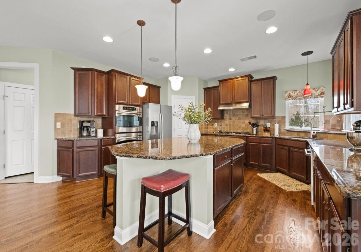 Welcome to 165 Pecan Hills Drive! A Rare Find and Entertainers Dream! This 5 Bed 4.5 Bath Home Boasts Almost 6,000 Sq Ft. Need a 2nd Living Area? Multi Generational Living? Enjoy the FULLY Finished Walkout BASEMENT w/ 2nd Kitchen/Bar Area, Bedroom and Bathroom! Basement also provides a Theater Room, Billiard Room and Ample Storage Space! Newly Finished Wood Floors! Fresh Carpet! 2 Story Great Room featuring Coffered Ceilings, Stone Surrounded Gas Fireplace, Primary Bedroom Suite on the MAIN Floor w/ Newly Remodeled Bathroom! Spacious Kitchen w/ Granite Countertops, Large island and Stainless Steel Appliances! 3 Bedrooms Upstairs w/ 2 Full Bathrooms! Home Office/Flex Space, Large Formal Dining Room, Step Outside to a Peaceful Tree Lined Setting, Fire Pit Area and Ample Yard Space, Oversized Garage! Convenient to Downtown Mooresville, Shopping, Dining, Parks and Schools, Award Winning Mooresville Graded School District!