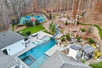 Exceptional luxury living in the highly sought-after River Run community of Davidson. Situated on a private 1.5+ acre estate lot, this stunning custom home blends elegant design, modern comfort, and resort-style outdoor living. Thoughtfully designed with expansive living spaces, high-end finishes, and seamless indoor-outdoor flow, the home offers both sophistication and functionality for everyday living and entertaining. The chef’s kitchen features professional-grade appliances, a large center island, and custom cabinetry, opening to spacious living and dining areas filled with natural light. The main level includes a luxurious primary suite and guest accommodations designed for comfort and privacy, while additional living areas and flexible spaces throughout the home provide room for work, fitness, and entertainment. Step outside to your private backyard retreat designed for year-round enjoyment. The grounds feature a custom pool with slide, pickleball court, basketball court, private putting green, and multiple gathering areas including a fire pit with seating, outdoor kitchen by the pool, and a wood-fired pizza oven—creating the ultimate setting for entertaining and recreation. Additional highlights include a 4-car garage plus dedicated golf cart garage, beautifully landscaped grounds, and expansive outdoor living spaces. Located within the desirable River Run community offering golf, tennis, swimming, and scenic walking trails, all just minutes from charming downtown Davidson, Lake Norman, dining, and shopping.