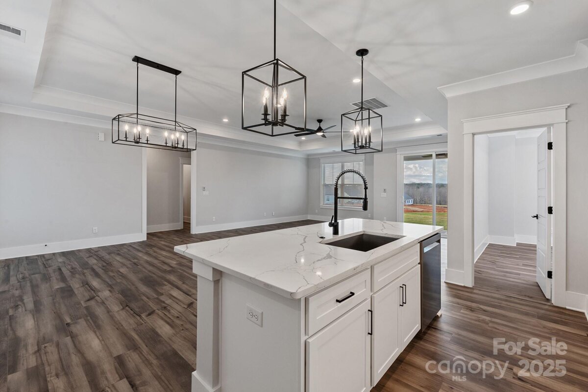 As you walk through the entry you will find yourself in an open floorplan with a fully loaded kitchen and culinary paradise that's ready to turn you into a gourmet chef. The white cabinets and sleek quartz countertops are like a blank canvas waiting for your culinary masterpieces. The kitchen island is a great place to meal prep, making it a hub for both cooking and conversations. Off the kitchen is the spacious family room, a cozy haven for movie nights and gatherings with friends. It's the perfect spot to unleash your inner decorator with endless possibilities for personalization. Out back you will find a covered porch with ceiling fan for relaxation. Please ask about our builder incentives!