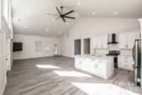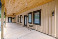 Welcome to your private retreat, an exceptional one-story barndominium tucked away on 1.85 acres surrounded by beautiful, mature trees. This sought-after property perfectly blends rustic charm with modern living, offering both space and privacy while remaining close to everyday conveniences. Step inside to find a thoughtfully designed open floor plan that seamlessly connects the kitchen and living areas, creating a warm and inviting atmosphere. This layout is ideal for entertaining guests or enjoying quiet evenings at home. The home features three spacious bedrooms and two full bathrooms, providing plenty of room for family and guests. Outdoor living is just as impressive. Enjoy relaxing on the stamped-concrete patio or unwinding on the covered front porch, perfect for morning coffee or evening sunsets. The surrounding landscape offers a peaceful, natural setting that enhances the property’s private feel. Car enthusiasts, hobbyists, or those needing extra space will love the massive 1,560 sq ft garage. It’s ideal for multiple vehicles, a workshop, or storage, offering flexibility to fit your lifestyle. Whether you're looking for a forever home or a weekend getaway, this property delivers the space, comfort, and charm that make it truly special.