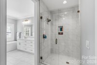 Welcome to an extraordinary waterfront retreat where refined modern design meets timeless sophistication on Lake Norman. This stunning 4,282 sq. ft. custom residence built in 2020 has been meticulously maintained. Offering 4 bedrooms, 4.5 baths, a private guest suite on the main level (perfect for guests or multi-generational living) and luxurious living spaces that seamlessly embrace the lake lifestyle. Step inside the dramatic arched doorway and be greeted by an open-concept main level bathed in natural light, and windows that frame sweeping lake views. Enjoy the comfort of your living room as the gas log fireplace offers warmth and built ins for added storage convenience. The kitchen is a masterpiece with a Bertazzoni gas range, expansive quartz island with seating, sleek cabinetry, a wet bar, and a generous walk-in pantry — perfect for entertaining and everyday living. Expansive accordion glass doors open from the living areas to the covered screened patio, effortlessly combining indoor and outdoor living. The primary suite is a tranquil sanctuary, boasting vaulted ceilings, uninterrupted lake views and a spa-inspired bath. Two additional bedrooms with private bathrooms and a huge versatile bonus room deliver space and flexibility. The dedicated upper laundry room offers built-in storage, a sink and tile flooring. Step outside to your private outdoor haven featuring a covered patio with a gas log fireplace, ideal for year-round gatherings, and a sprawling yard with space for a future pool. A peaceful stone pathway leads down to your waterfront with a covered dock including a hydro hoist boat lift plus a secondary cable lift ready for lake adventures. With a 3-car attached garage and no HOA, this residence blends luxury, convenience and recreation effortlessly. Stunning water views, premium finishes and thoughtful architectural details. Located minutes from premier dining, shopping, marinas, golf, parks and top-rated schools, this Lake Norman gem defines elevated waterfront living.
