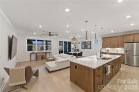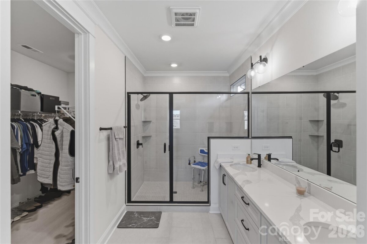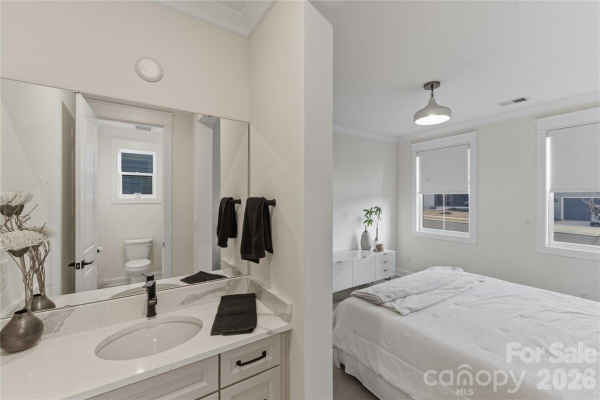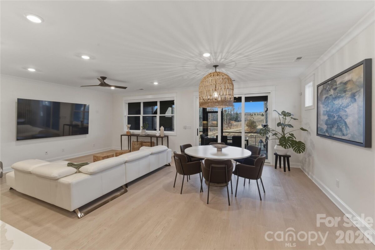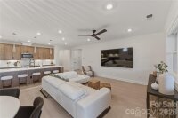 Welcome to effortless living in Tega Cay. This thoughtfully designed 1.5-story home offers the convenience of primary living on the main level with additional flexible space upstairs. Three bedrooms and 2.5 bathrooms are located on the main floor, along with the laundry room for added functionality. Upstairs, you’ll find a private fourth bedroom and spacious loft that's ideal for a home office, media space, studio, or additional living area. The open-concept kitchen, dining, and living areas create a seamless flow for gathering, entertaining, or everyday living. Engineered waterproof vinyl flooring runs throughout the main level, and there is no carpet anywhere in the home, offering a clean and cohesive feel. Step outside to a screened-in patio designed for year-round enjoyment, complete with a built-in Blackstone griddle and exterior fireplace. The fenced backyard provides a defined outdoor space, and the irrigation system helps maintain the landscape with ease. A functional layout, durable finishes, and well-designed indoor and outdoor spaces come together to create a home that adapts to a variety of lifestyles. This smart home is ready for its new owner!