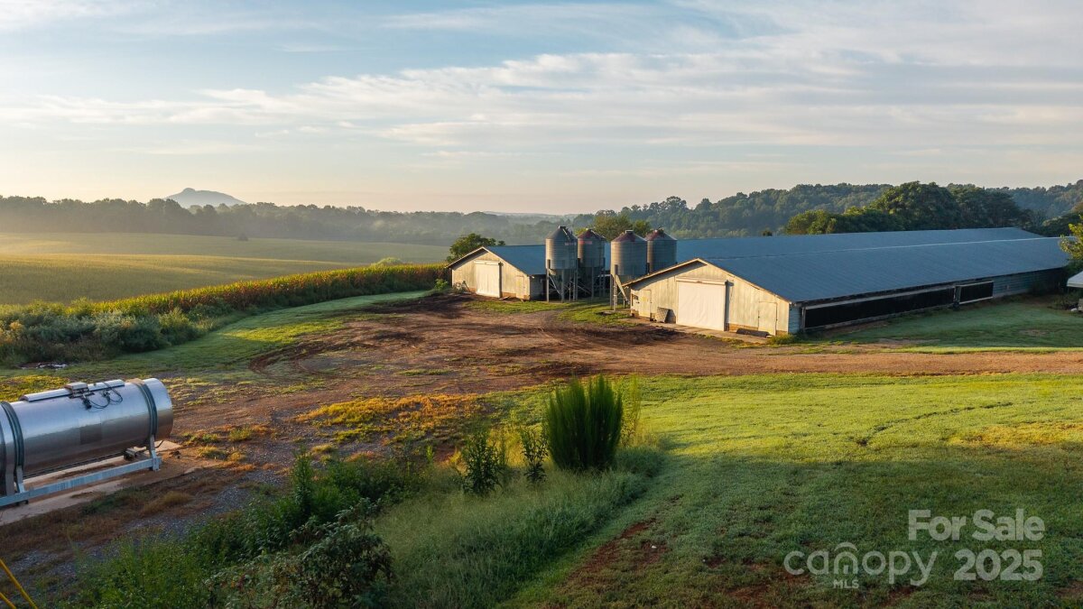 Enjoy sunrise views over Pilot Mountain from Watts Poultry Farm at 167 Buck Hollow Trail in Ararat, NC. This property features a six-house poultry operation with residence, small pasture, and an active Tyson contract. The houses, built between 1990–1994, were upgraded in 2017 and each includes a 1,000-gallon propane tank, LED lighting, Ziggity drinkers, Big Dutch feeders, and brooders. A Chortronic control system (updated 2017) and a 175 kW John Deere generator provide reliable management and backup power. Additional improvements include a Biovaporator installed in 2024, a new 175x50 dry stack litter shed (10 year use requirement), and solid sidewalls with a cool-cell extension added in 2009. The farm is supported by two wells (100+/- gpm and 55+/- gpm) with holding tanks, above-ground diesel storage, and multiple outbuildings for storage and litter management. A three-bedroom, two-bath brick home with full basement and propane service is included, along with a small front pasture area for added flexibility. Equipment to convey includes a housekeeper and 2023 pulverizer. With an active contract and current flock placed in August, this property combines a productive farm operation with beautiful mountain views. $1,200,000