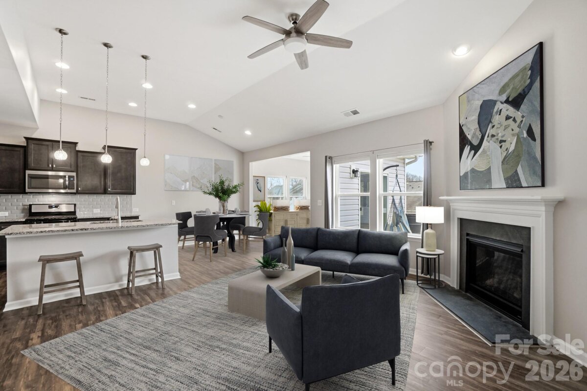 Welcome home to this charming ranch-style home with a bonus room, perfectly located near local restaurants, and shopping. With easy access to Charlotte and Charlotte Douglas International Airport, commuting or traveling is a breeze. Step inside to an open and inviting floor plan designed for both comfort and entertaining. The spacious living room features a cozy fireplace, creating the perfect gathering space for relaxing evenings. The layout flows seamlessly into the main living areas, making it ideal for hosting family and friends. The home also features a bright sunroom, offering a wonderful space to enjoy your morning coffee, unwind with a book, or take in views of the backyard year-round. The large primary suite provides a private retreat with plenty of space to relax and recharge. Outside, you’ll find a fenced-in backyard perfect for pets, play, or outdoor gatherings. Residents of the community also enjoy access to a playground and community pool, adding even more opportunities for fun and relaxation. With its great location, functional layout, and inviting spaces, this home offers comfort, convenience, and a lifestyle you’ll love.