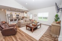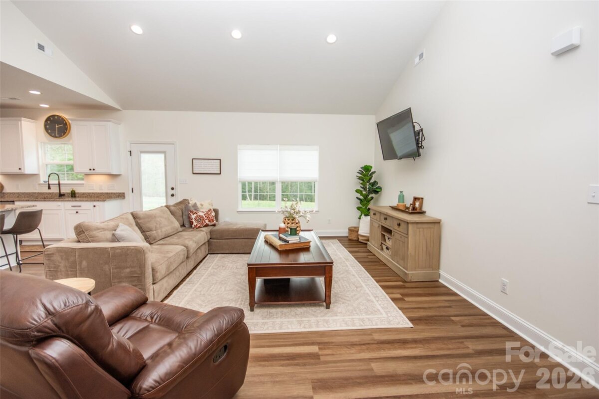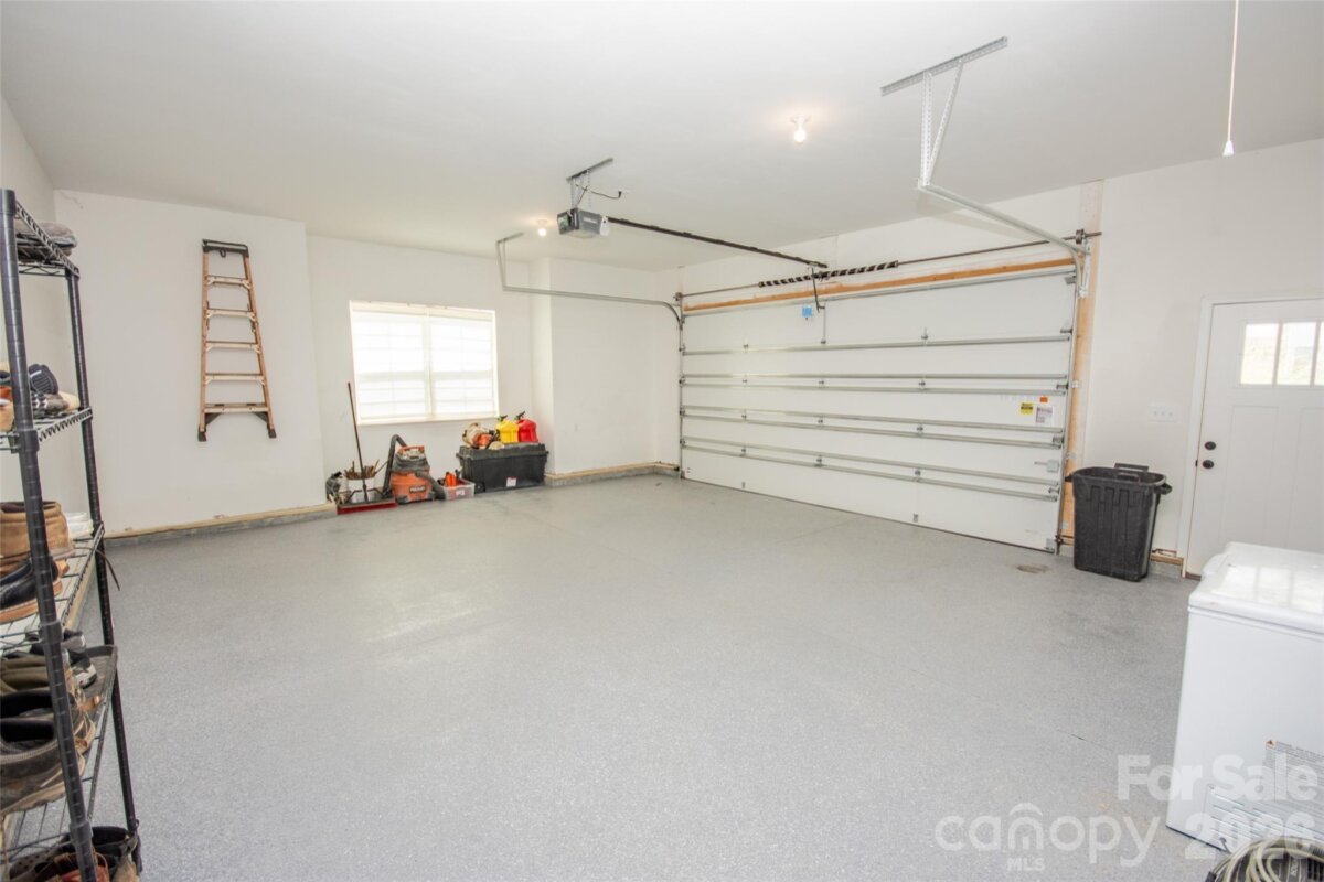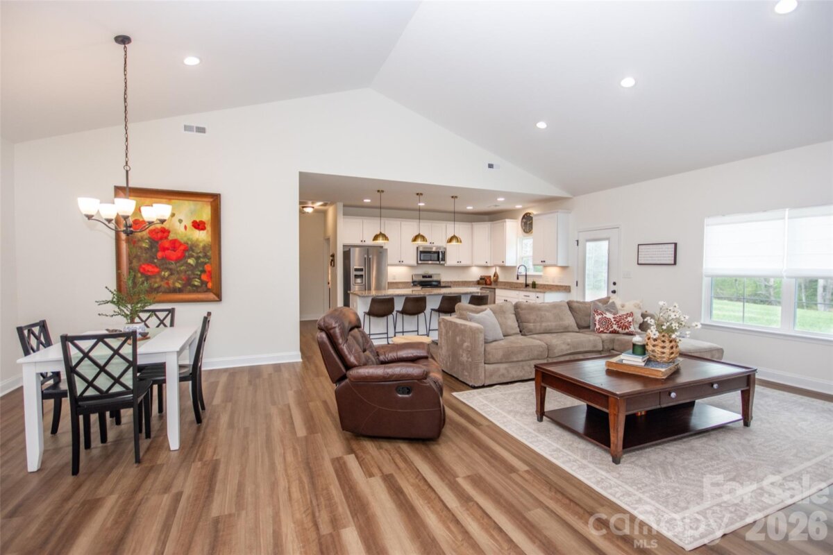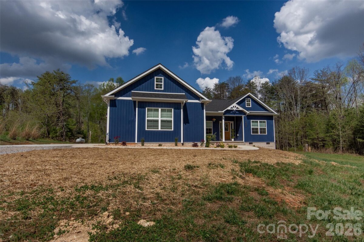 Adorable 3 BR, recently built, crisp and clean home on just over an acre in beautiful North Iredell Community. Large great room with cathedral ceiling. flooded with natural light! Functional and open island kitchen, soft-close painted cabinets, granite, under-cabinet lighting, SS appliances, large pantry. Home has 9' ceilings, a large, tiled shower w/rainfall shower head in primary bath, spacious walk-in closet, dual vanity. Durable LVP in all common areas. The lot is private and deep so that the home is set off the road and there is a large level backyard the right size for play, entertaining, gardening, relaxation, sitting by the firepit or listening to the babbling creek that is just at the rear property line. Oversized garage with pull-down attic access and floored storage above and a new polyurea-coated floor.