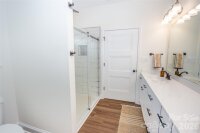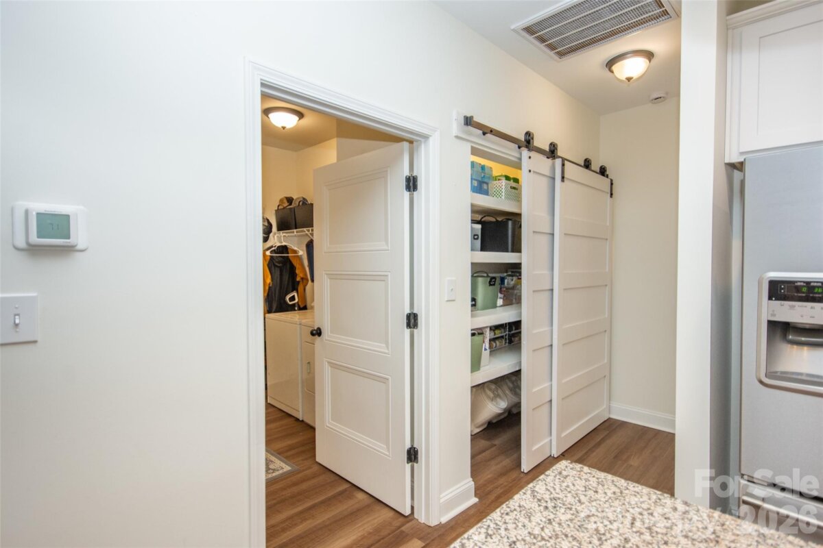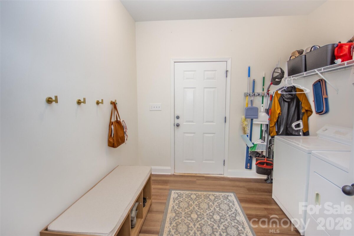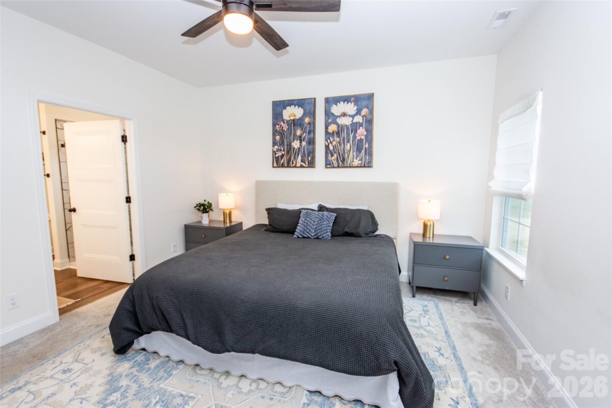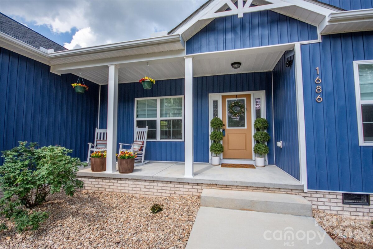Adorable 3 BR, recently built, crisp and clean home on just over an acre in beautiful North Iredell Community. Large great room with cathedral ceiling. flooded with natural light! Functional and open island kitchen, soft-close painted cabinets, granite, under-cabinet lighting, SS appliances, large pantry. Home has 9' ceilings, a large, tiled shower w/rainfall shower head in primary bath, spacious walk-in closet, dual vanity. Durable LVP in all common areas. The lot is private and deep so that the home is set off the road and there is a large level backyard the right size for play, entertaining, gardening, relaxation, sitting by the firepit or listening to the babbling creek that is just at the rear property line. Oversized garage with pull-down attic access and floored storage above and a new polyurea-coated floor.