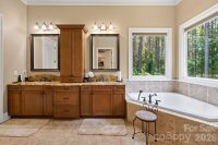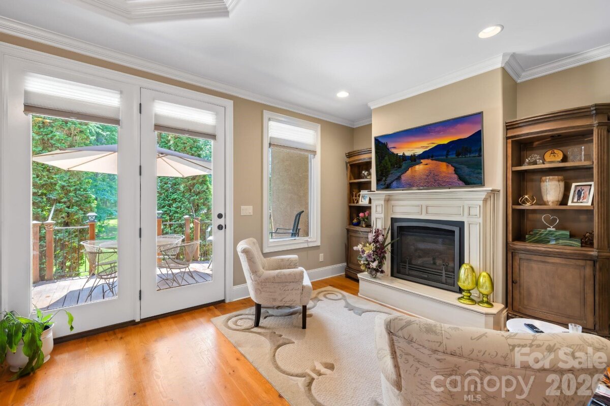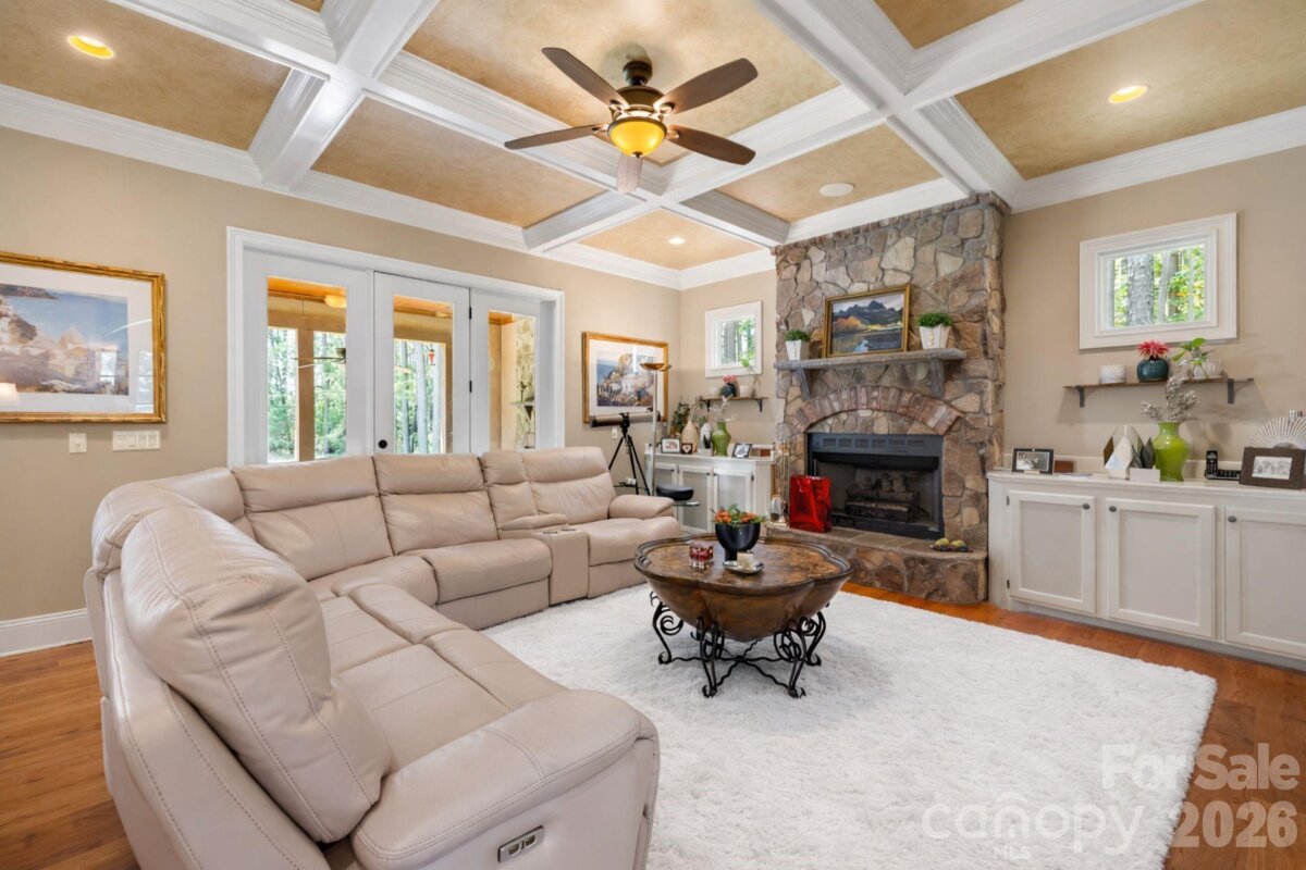 Discover a custom built retreat where timeless elegance, modern comfort, and meticulous craftsmanship create the ultimate private sanctuary. Step into a two story foyer flanked by a formal dining room with a cozy gas fireplace on one side and a uniquely designed music room with stone accents and polished wood pillars on the other. At the heart of the home, the chefs kitchen features granite countertops, stainless steel appliances, a gas cooktop, double ovens, a JennAir refrigerator, and a generous center island with a bar sink, all flowing seamlessly into the family room with its coffered ceiling, built in cabinetry, and a floor to ceiling stone fireplace. A covered veranda with its own wood burning fireplace and built in sound system creates a stunning setting for year round entertaining. The main floor primary suite is a private retreat with a sitting area, tray ceiling, and its own gas fireplace. A private deck overlooks the large, fenced backyard surrounded by towering pines for total privacy. The spa inspired bath features heated tile floors, a walk in shower, a Jacuzzi tub, dual vanities, and a custom walk in closet with built in shelving and drawers. Upstairs, you will find three additional bedrooms including a guest ensuite and a Jack and Jill layout, plus a large bonus room, game room, and multiple walk in attic spaces for storage. Recent upgrades include a new roof installed in 2023, a tankless water heater with whole house filtration and softener system installed in 2023, and an upstairs HVAC system installed in 2021. With its blend of thoughtful design, luxury finishes, and serene privacy, this home offers an unmatched living experience.