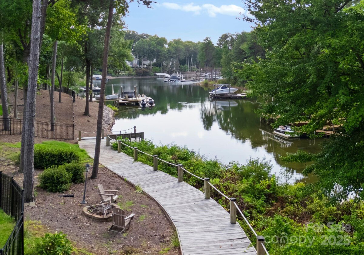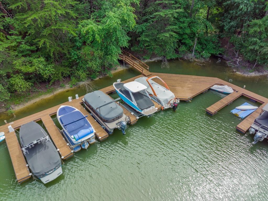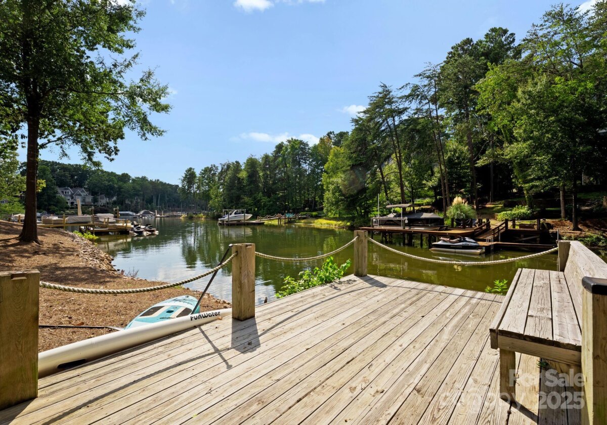 Welcome to 168 Brownstone Drive—an exquisite waterfront retreat in the heart of The Point, Mooresville’s premier lakefront community. Fully updated and meticulously maintained, this stunning ranch-style home with finished walk-out basement offers the ultimate blend of luxury, privacy, and access to the lake lifestyle—complete with a deeded boat slip just steps away. Inside, you’ll find a reimagined gourmet kitchen with top-of-the-line appliances, custom cabinetry, quartzite countertops and expansive island perfect for entertaining. Freshly refinished hardwood floors, updated bathrooms, fresh paint, and designer finishes elevate every inch of the interior. The main level features an elegant primary suite with spa-like bath and generous walk-in closet, plus two additional bedrooms with en-suite access. The lower level is a true showstopper—ideal for multigenerational living or entertaining—with a sleek second kitchen/bar, high ceilings, a spacious rec room, private guest suite, two offices, and workshop space. It flows seamlessly out to a new travertine terrace with outdoor fireplace, built-in grilling station, and views of the peaceful cove. Enjoy evening strolls along your private boardwalk leading to the water, or imagine relaxing poolside with the included pool rendering offering a vision for your dream backyard oasis. Tucked on a lush, tree-lined lot, this home offers both serenity and proximity to The Point’s world-class amenities—golf, tennis, dining, and more (with separate TNG membership). Whether you’re seeking a full-time residence or lakefront retreat, this updated gem offers the space, style, and setting to live your best Lake Norman lifestyle.