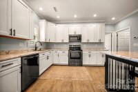 Beautifully designed 2024 construction, 3 bedroom, 2 bath home offering easy main-level living and a spacious open floor plan. This home features a bright, open living area with 9-foot ceilings and luxury vinyl flooring throughout, creating a modern and stylish feel. The open concept living area is perfect for gathering, while the kitchen offers a pantry and easy flow for entertaining. Thoughtful upgrades like custom plantation shutters on all windows, crown molding, 5 inch baseboards, high efficiency heat pump and central air, extra insulation in walls and overhead, pull down attic stairs with flooring for storage, and a security system add comfort, efficiency and peace of mind. Step outside to a large .48 acre lot - ideal for outdoor living. A standout feature is the wired storage shed with matching hardiplank siding - perfect for a workshop, studio or additional storage. Complete with a 400 SF garage and extra wide concrete drive. You will not be disappointed with this property.