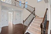 Welcome Home to Davidson East! Former model home by CalAtlantic—loaded with upgrades and designer details throughout. Step into a stunning two-story foyer with a dramatic iron staircase. The open interior features extended moldings, 8-foot doors, recessed lighting, and a gourmet kitchen with double ovens, upgraded cabinetry, and a custom hood vent. The main level includes a light and airy large family room with tons of windows and natural light and a gas log fireplace as well as a drop zone off the garage and guest suite with a full bath, perfect for visitors. Upstairs, the spacious primary suite offers abundant natural light, a fully tiled shower, a standalone soaking tub, and a custom walk-in closet with built-ins. Two additional bedrooms, a full bath, a laundry room with extra cabinetry, and a Juliet balcony overlooking the loft complete the upper level. Enjoy indoor-outdoor living with large sliding doors leading to a partially fenced backyard with a covered paver patio and firepit. Davidson East offers resort-style amenities including a clubhouse, pool, playground, and future greenway access. Conveniently located near Hwy 73, Birkdale Village, Downtown Davidson, and Concord. New carpet installed on 11/5. Professional pictures to be added 11/7.