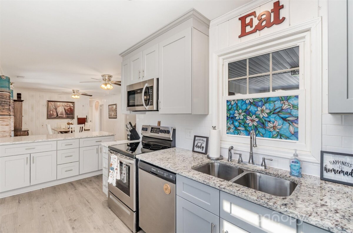 This property includes a one-year home warranty for added peace of mind! Plus, a 1-0 Buydown is available when using the preferred lender, making your first year’s payments even more affordable. This beautifully maintained 1.7-acre property offers the perfect blend of space, charm, and convenience, providing the ideal balance of country living with city proximity. Inside, the 3-bedroom, 2-bath home features farmhouse-style wood plank walls that add warmth and character, along with updates completed in 2020 including a new roof, windows, flooring, light fixtures, vanities, and HVAC system. The kitchen boasts granite countertops, updated cabinetry, and stylish lighting—perfect for everyday living and entertaining. Step outside to an expansive covered deck designed for true outdoor living, complete with a sectional patio sofa that can be configured in multiple ways and will remain with the home. This inviting space overlooks the beautifully landscaped yard and provides the perfect setting to relax, dine, or host gatherings year-round. The property is fenced with a hand-crafted wooden fence made from reclaimed barnwood, adding rustic charm and functionality, and also includes a storage shed added in 2023. Most impressive is the insulated 1200 square foot (30x40) garage/workshop, a dream space for hobbies, projects, or business, fully equipped with a 9,000 lb Challenger lift, Champion 60-gallon air compressor, dual mini-splits for year-round comfort, and even an antique decorative gas pump. Additional features include city water with a functioning private well, thoughtfully designed chicken coops/runs (removable if desired), and the sellers’ willingness to include select furnishings with an acceptable offer. This property is truly one of a kind—offering character, updates, outdoor lifestyle, and a workshop like no other, making it an extraordinary opportunity you won’t want to miss!