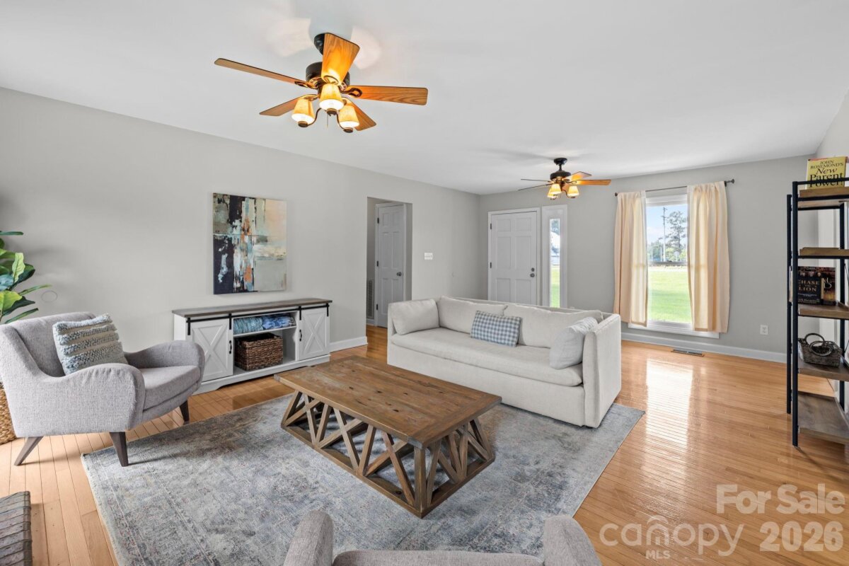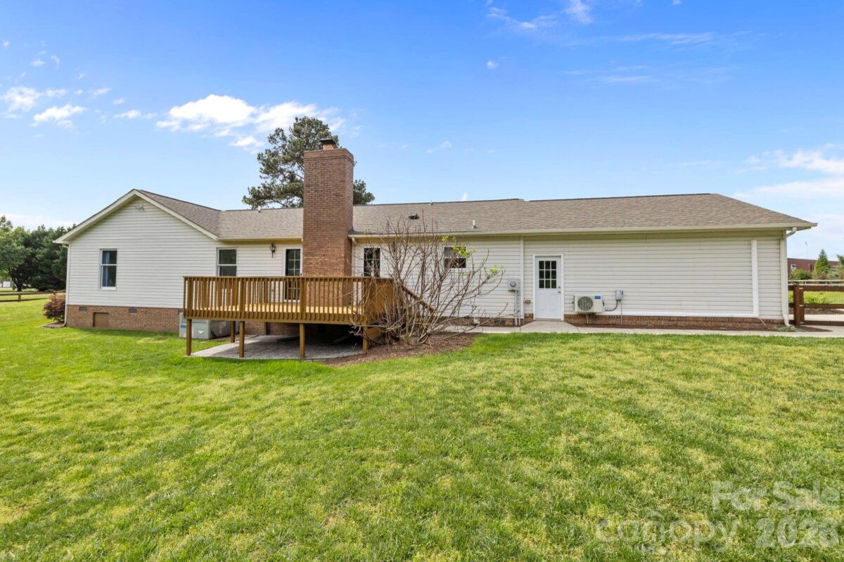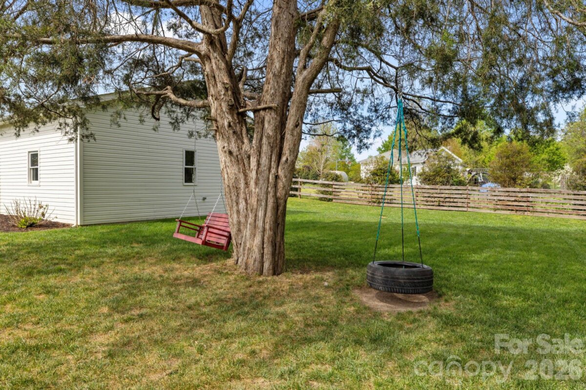 Located on over 1 acre of land, this well-maintained ranch offers the perfect blend of comfort, functionality, and room to breathe. Step inside to find a thoughtfully designed single-level layout with generous living spaces, abundant natural light, and a warm, inviting feel throughout. With over 2,200 sq ft, there is plenty of room to spread out. Enjoy 3 bedrooms, 2 full baths, a cozy living room with fireplace, dedicated dining room, and an oversized bonus room with endless possibilities. All bedrooms have walk-in closets with upgraded shelving. Outside you will find a spacious tree-lined backyard. Relax on the back deck or take advantage of the open space—perfect for recreation, gardening, and entertaining. Gather around the firepit on cool evenings and enjoy a variety of fruit this summer from berry bushes and a fig and peach tree. Playground and tree swings will remain! One of the standout features of this home is the heated and cooled detached garage/workshop that is perfect for hobbyists, storage, or protecting your car from the elements. Whether you are into woodworking, car projects, or just want a dedicated workshop, this is a valuable addition! If you have been searching for a move-in ready property with space and versatility, this one checks all the boxes. This wonderful home provides a peaceful setting while still offering convenient access to everything the greater Charlotte area has to offer. Walk to the high school and middle school(next year) and just a few minutes drive to the elementary school. No hoa!