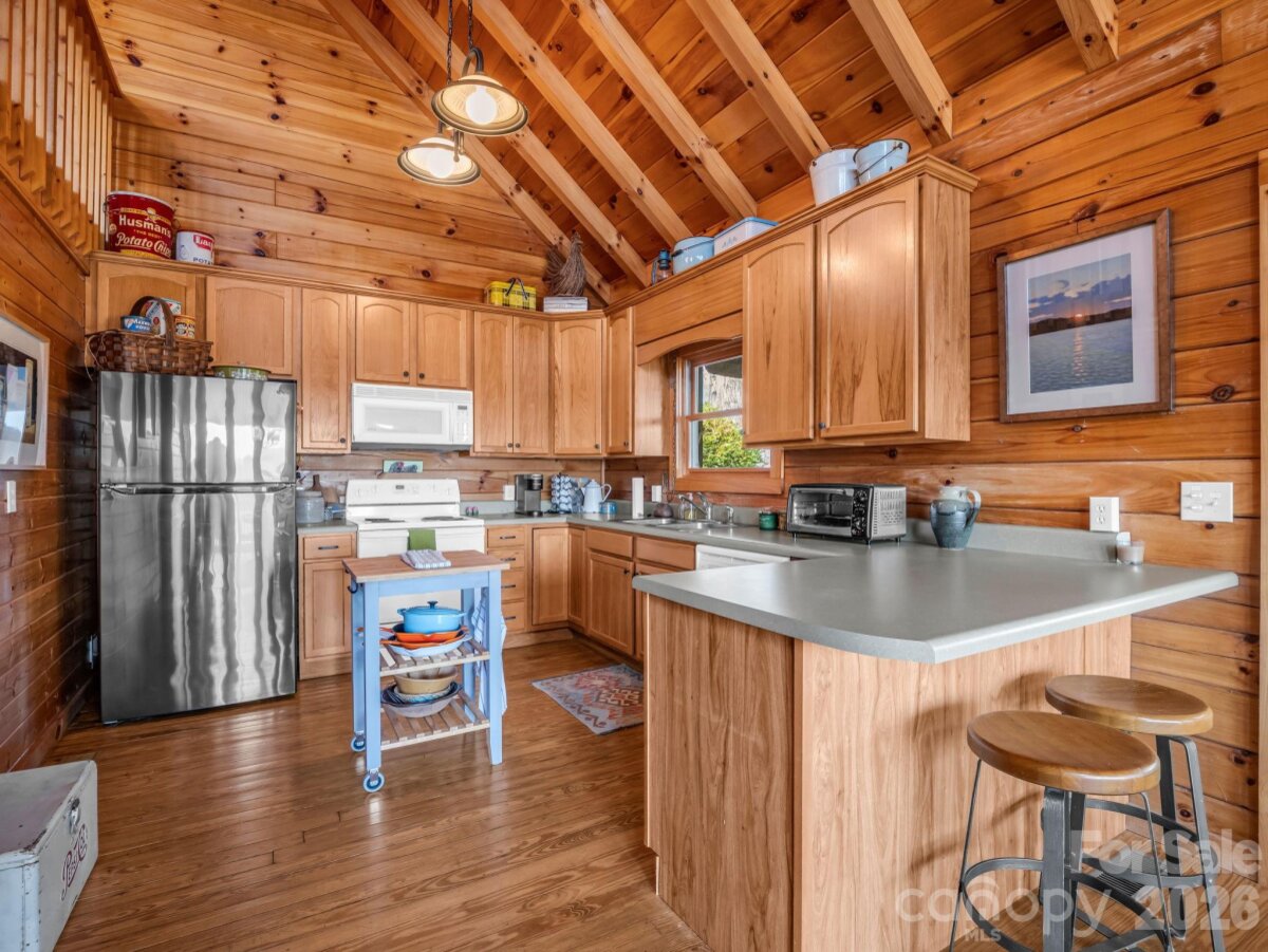 Welcome to your quintessential mountain retreat overlooking beautiful Lake Lure! This charming log cabin blends rustic character with breathtaking lake and mountain views, offering the perfect escape or full-time residence. Vaulted ceilings, exposed beams, and a stunning stone fireplace create a warm and inviting great room ideal for relaxing after a day on the water. With two bedrooms—including an airy loft that perfectly captures the cozy cabin feel—the thoughtfully designed layout offers comfort and flexibility for family and guests alike. Large windows frame the scenic surroundings, filling the home with natural light and showcasing the peaceful lake views. Spanning three levels, each floor features its own private deck, creating intimate outdoor spaces to enjoy morning coffee, unwind in the evening, or simply take in the serenity of the mountains from every level of the home. Located just minutes from lake access, dining, and outdoor recreation, this property is ideal as a primary residence, vacation getaway, or investment opportunity in the heart of Lake Lure.