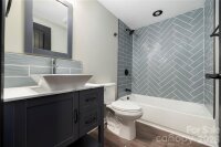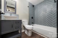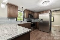 Positioned on a rare double lot, this thoughtfully renovated 3-bedroom, 2-bath ranch in Statesville delivers both modern updates and added outdoor space. Conveniently located near I-77, I-40, and Hwy 70, it offers easy access while maintaining a comfortable residential feel. The kitchen features wood-stained shaker cabinetry, granite countertops, stainless steel appliances, and an oversized gray subway tile backsplash for a clean, contemporary look. The bathroom is equally refined with a vessel sink vanity and a herringbone-tiled shower/tub combination. Additional upgrades include recessed lighting, replacement windows, and a covered front porch perfect for relaxing. With recent improvements to the roof, HVAC, insulation, drywall, flooring, water heater, and backyard fencing, this home is well-prepared for its next owner.