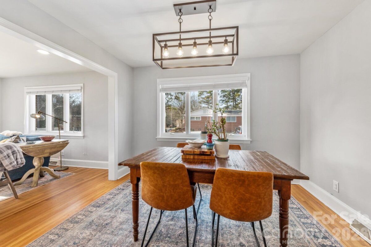 1708 Miles Court is located just a 5-minute drive to Uptown Charlotte in Historic Oaklawn Park. This well-maintained 1950’s ranch sits elevated from the street and has cute curb appeal. Enter the front door to a sunlit living room which opens to the dining room and kitchen. The paneled den and enclosed rear porch offer additional living space. Most of the house features original hardwood floors that give off a special warmth. 3 bedrooms, an updated bath and large laundry room finish off the interior of this fine home. Step outside to the backyard which features a firepit, patio and carport. 2023 Electrical Update. Other very close-by attractions include Camp North End and the Music Factory. Schedule a tour today!